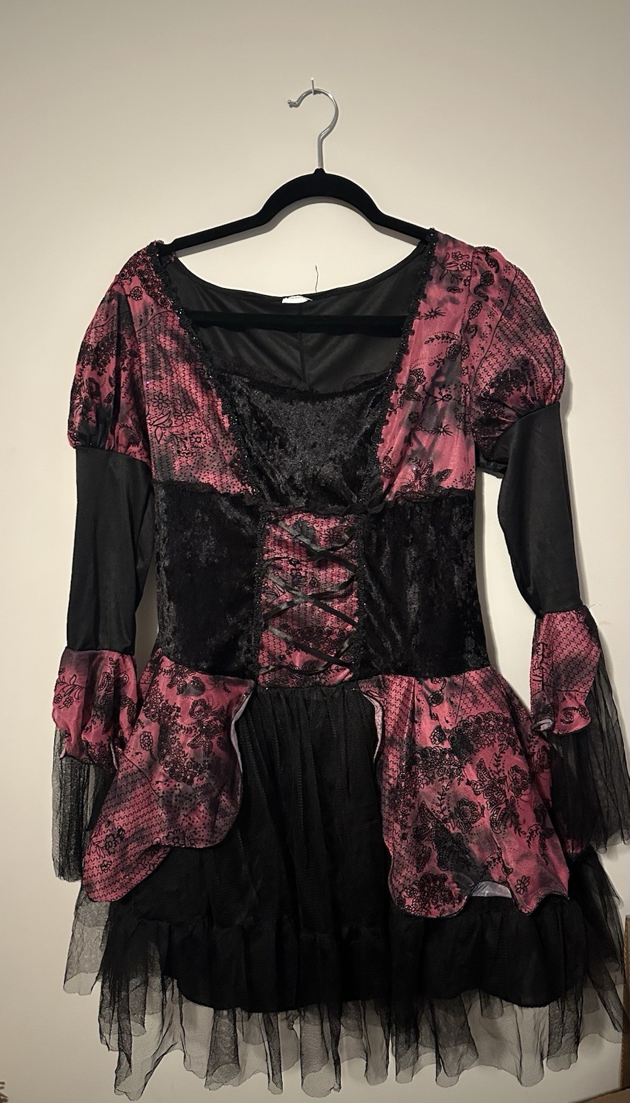 как выглядит Black Pink Medievil Goth Witch Costume Womens XS/SM Mesh Lace Long Sleeve фото