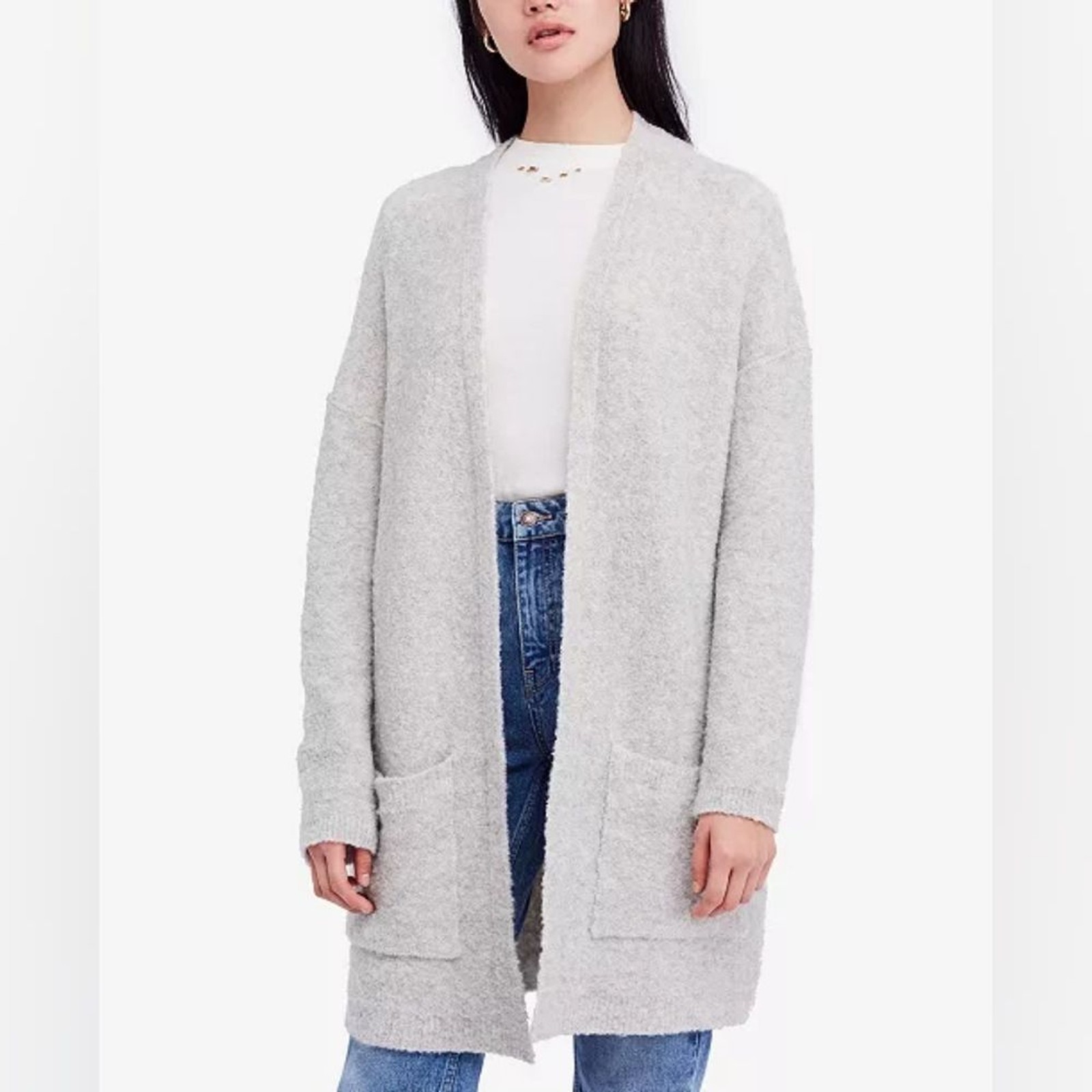 Free People Light Gray Phantom Women's Wool Blend Fuzzy Long Cardigan Sweater sm