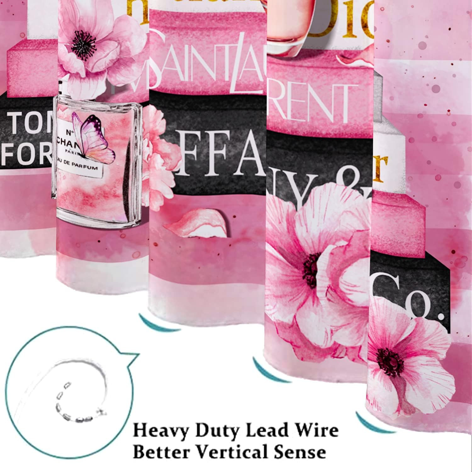 Fashion Shower Curtain, Pink Black Luxury Shower Curtains Girly Floral Perfume
