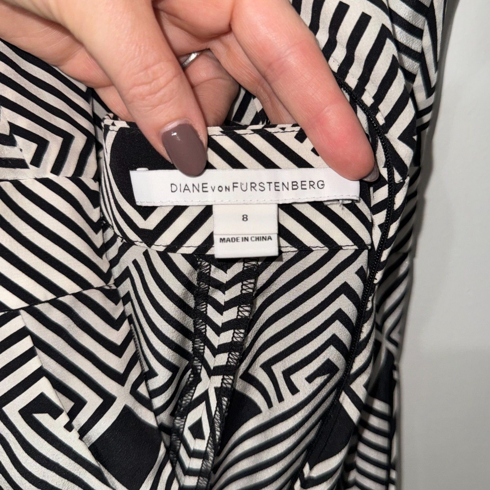 как выглядит Diane Von Furstenberg Ireland Geo Stripes Silk Jumpsuit - Black/White 8 фото