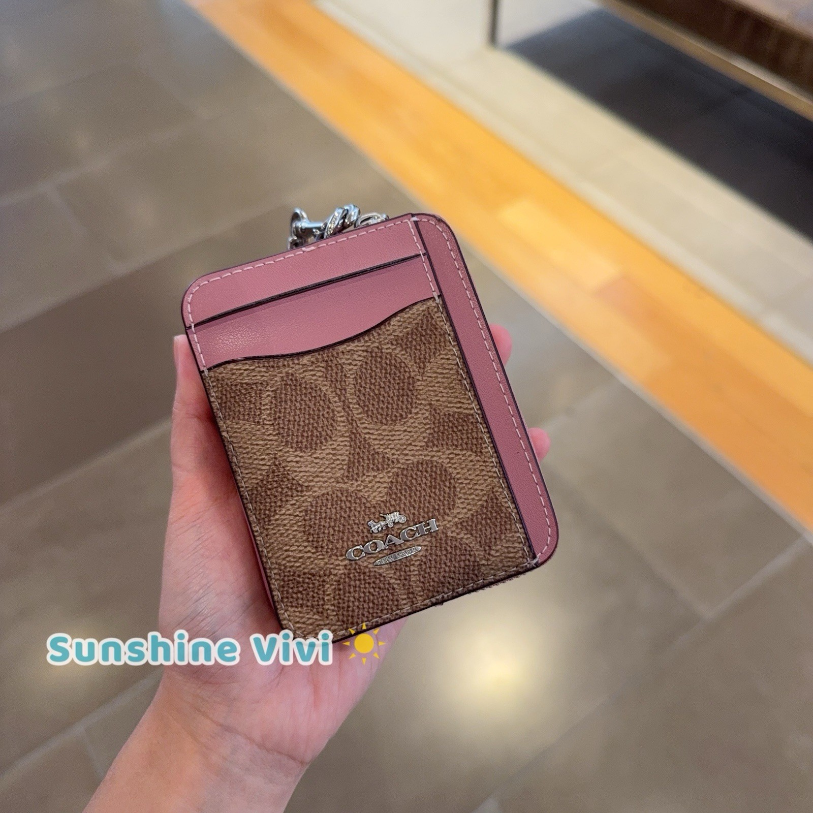 как выглядит NWT Coach CW883 Zip Card Case In Signature Canvas In Dusty Pink фото