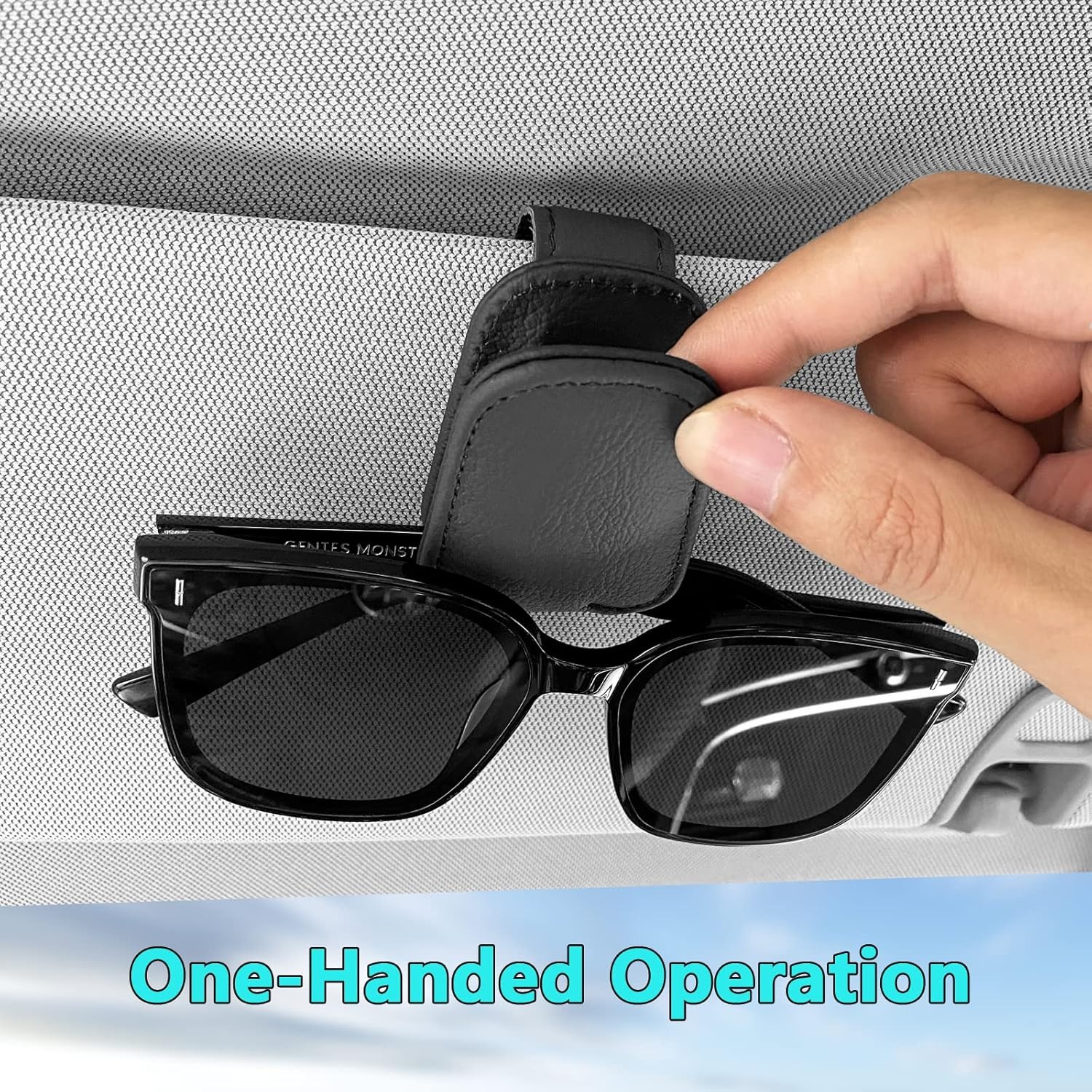 Sunglass Holder for Car Visor, Magnetic Leather Eyeglass Hanger Clip for Car, Ca