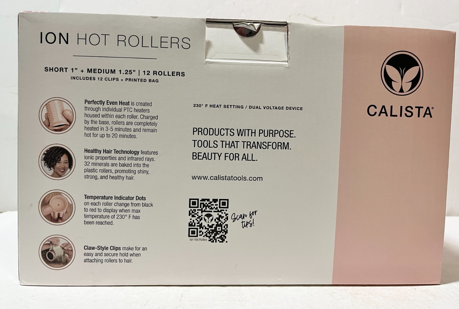 Calista Ion Hot Rollers 12 - 1 Short 1.25 Medium Clips Stand Case Pink - LN
