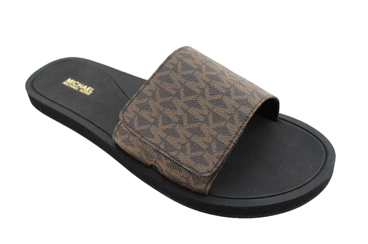 NWB MICHAEL KORS Wade Women's 7 M Brown Repeat Logo Slide Sandals MSRP 99