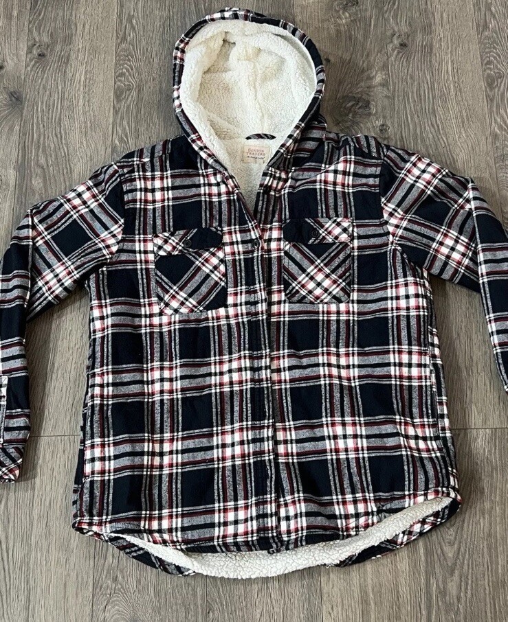 как выглядит Boston Traders Women Jacket Large Red Plaid Flannel Sherpa Lined Shacket фото