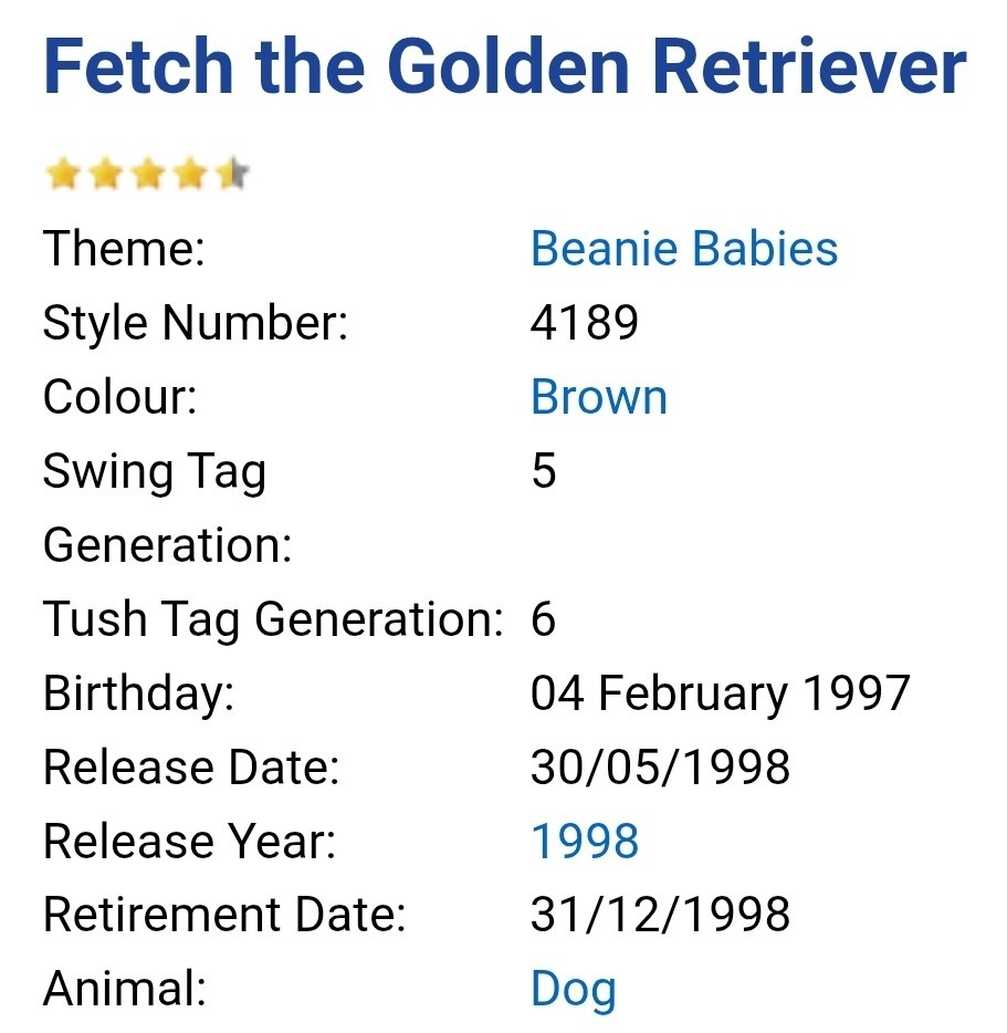 как выглядит FETCH  1998 Ty Beanie Babies Light Brown Golden Retreiver DOG Baby MWMT фото