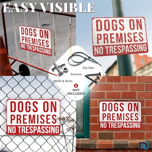 как выглядит 2 PC Dogs On Premises No Trespassing Signs, 7x10 Aluminum Beware Of Dog Signs фото