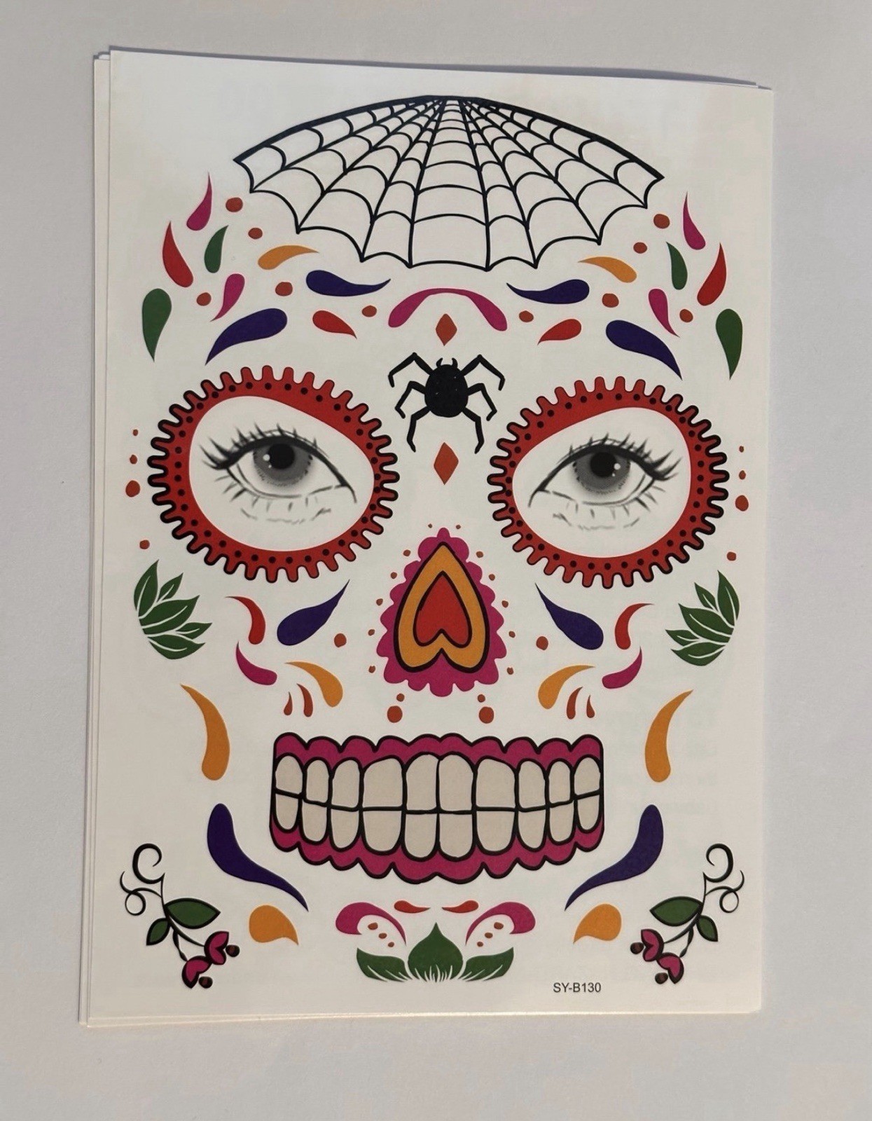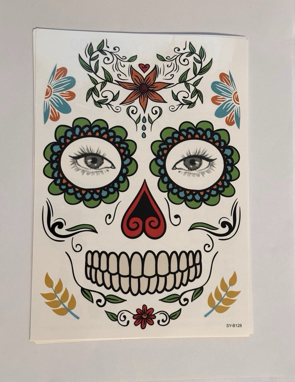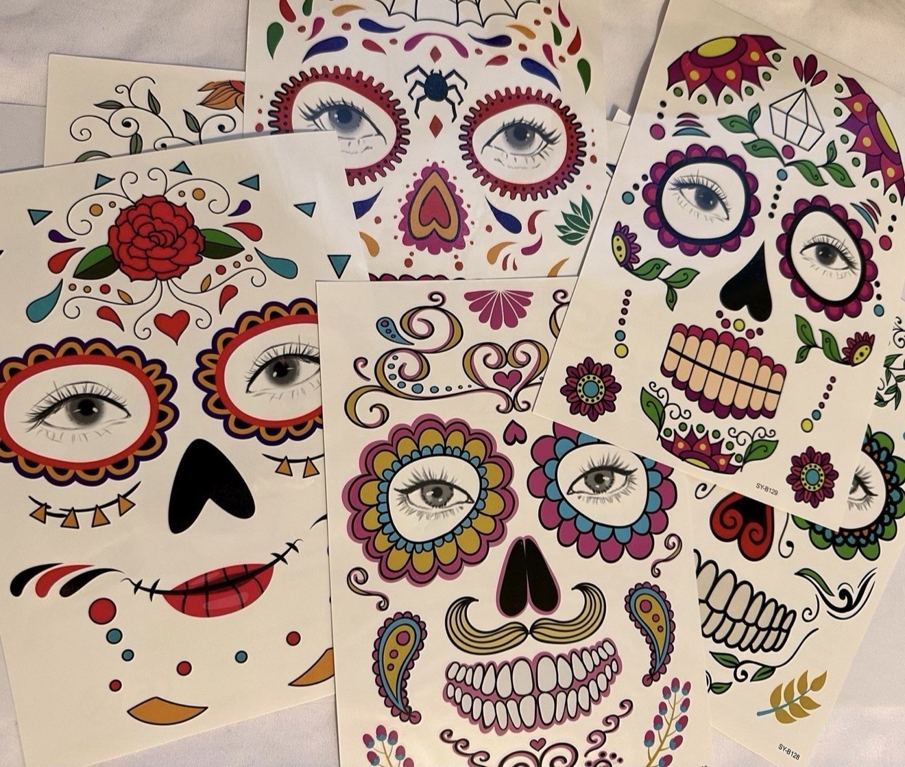 9 Pack Day of the Dead Face Tattoos, Sugar Skull Catrina Makeup Kit, Halloween