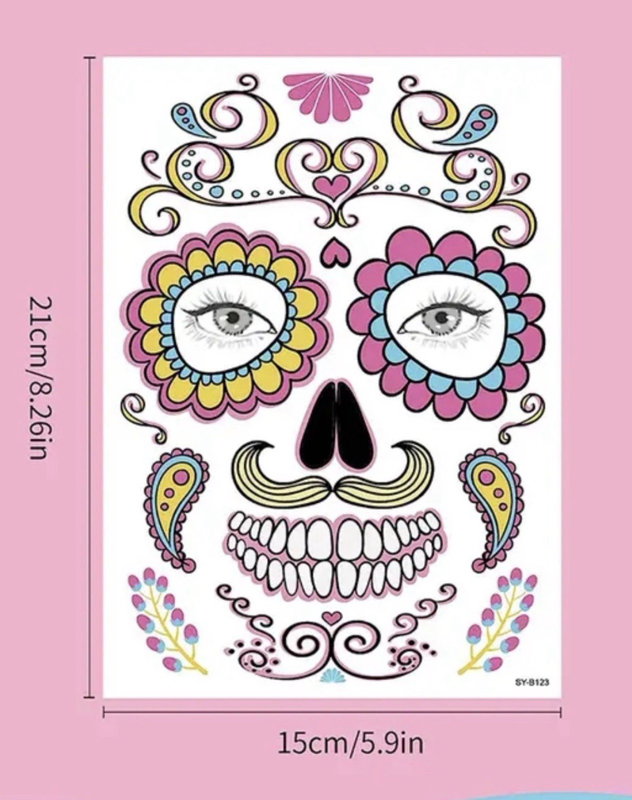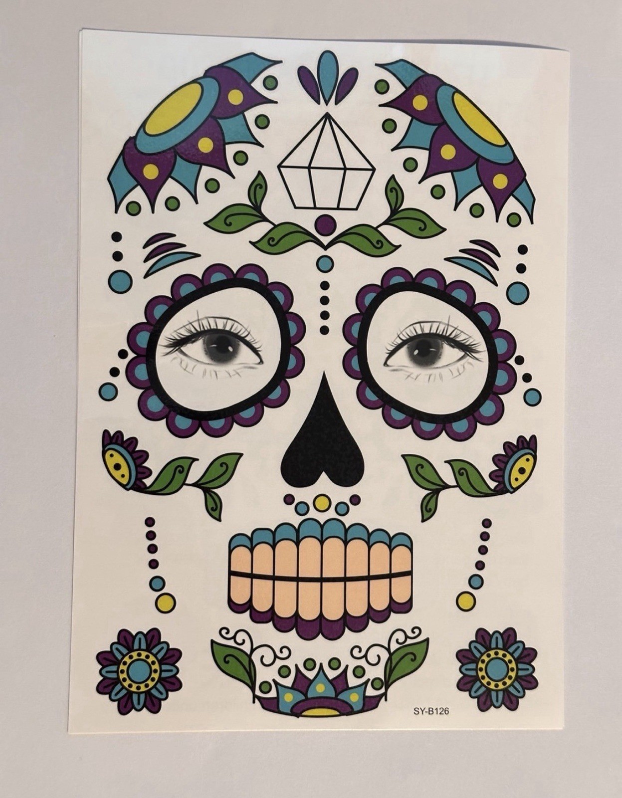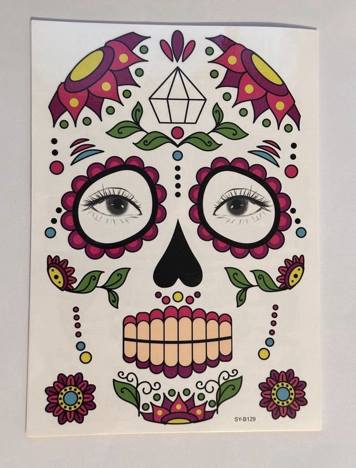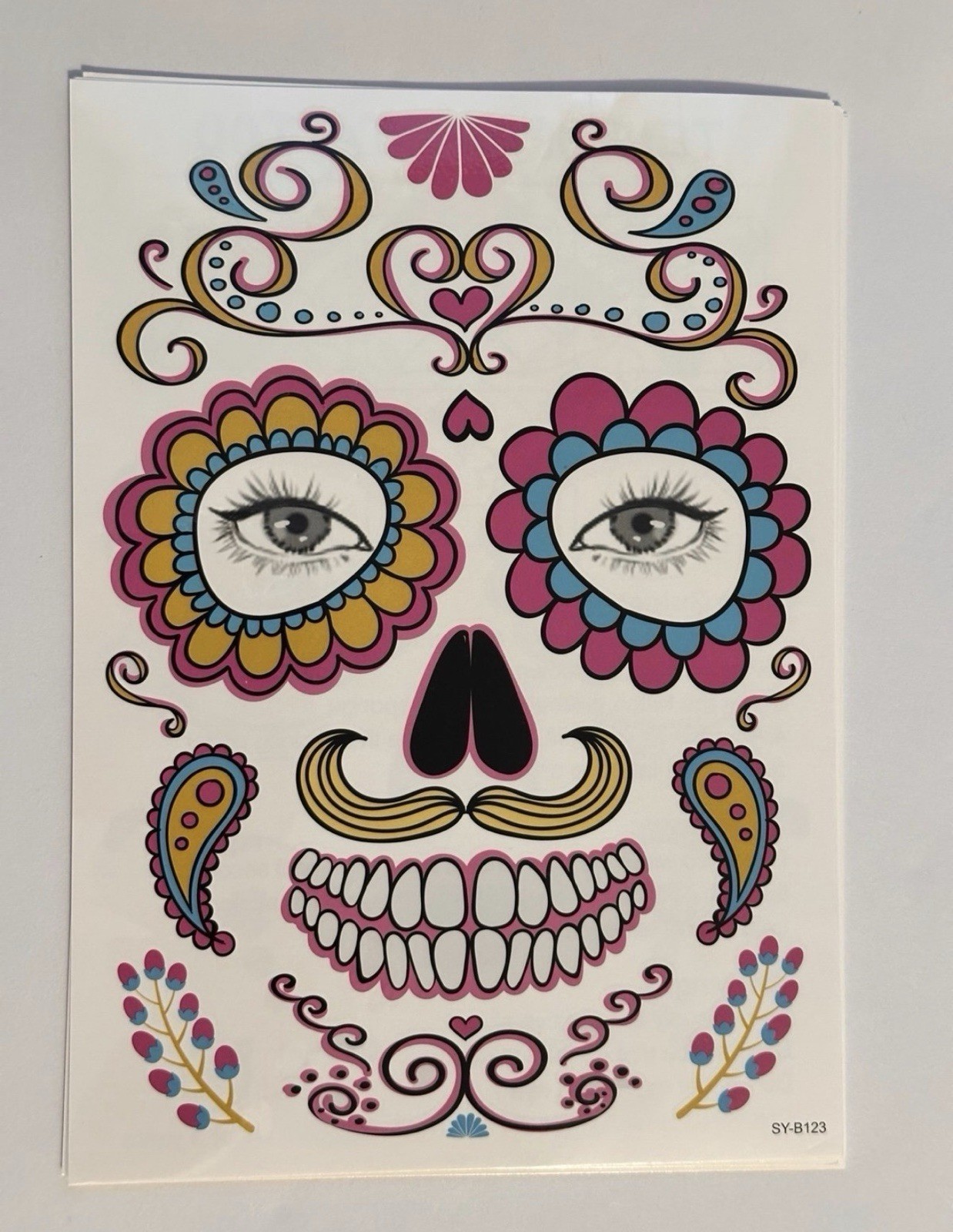 9 Pack Day of the Dead Face Tattoos, Sugar Skull Catrina Makeup Kit, Halloween