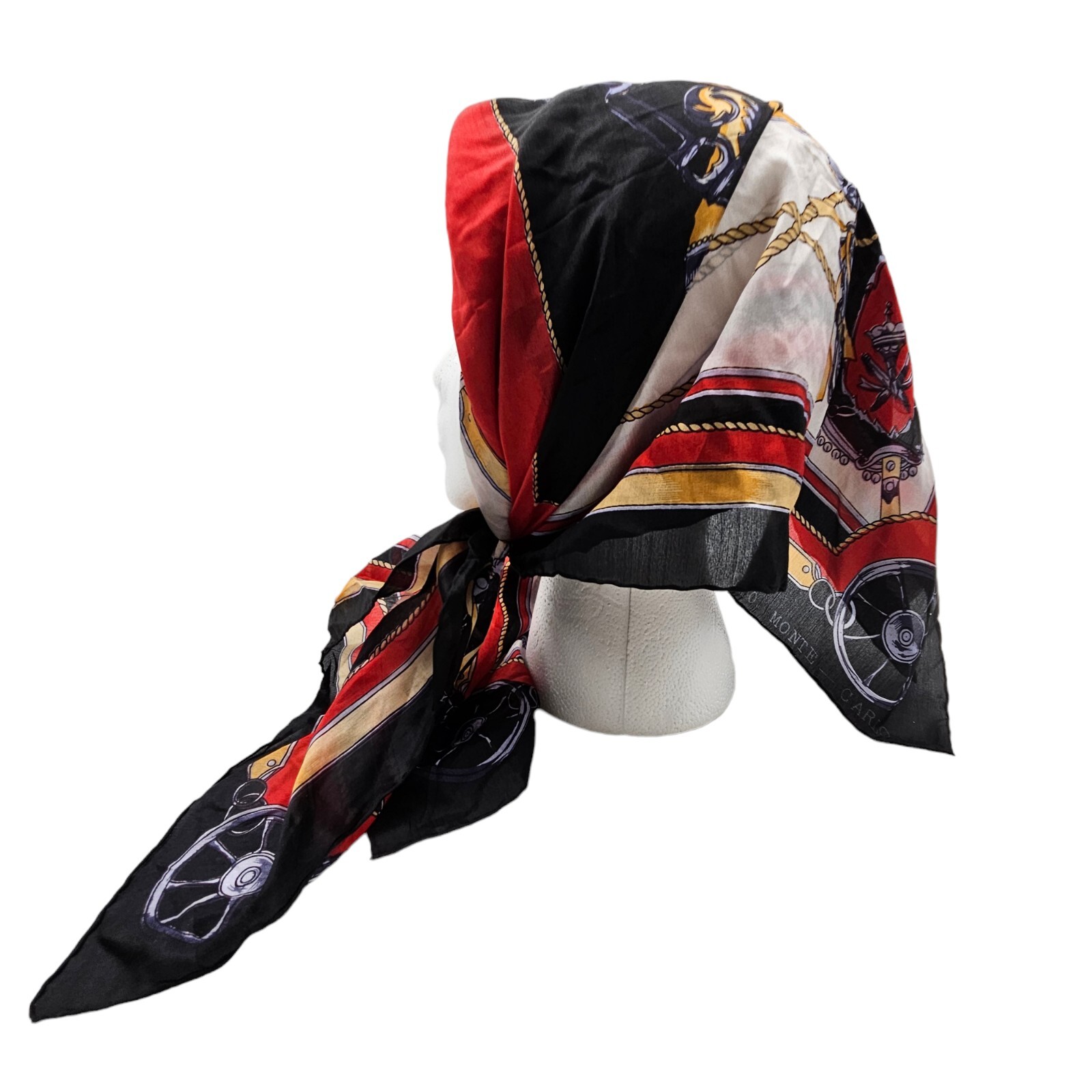Vtg Wagon Silk Scarf Hand Made 100 Silk Black Red 32 Wrap Monaco Monte-Carlo