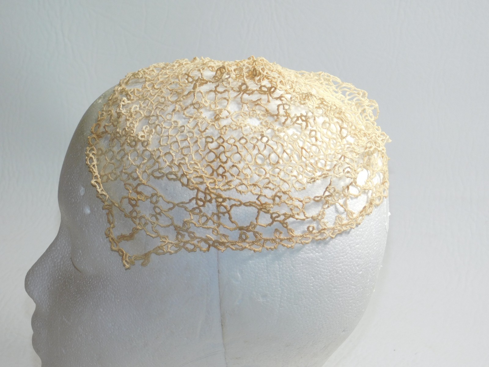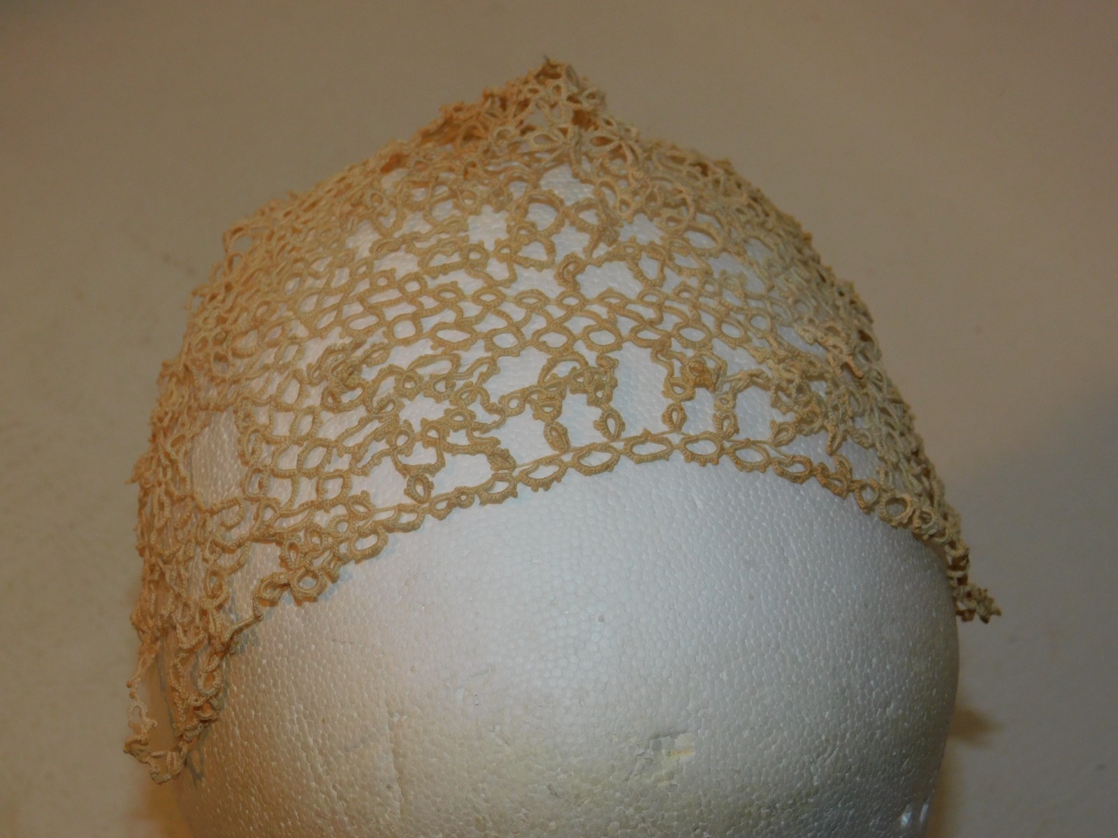 как выглядит Vintage Tatted Lace Baby Hat Hood Handmade - Read фото