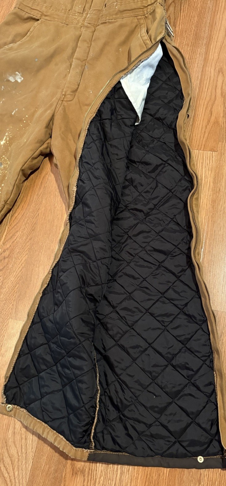 Dickies Bib Canvas Overalls Insulated Men s Sz LG 38/31 Brown Double Knees READ