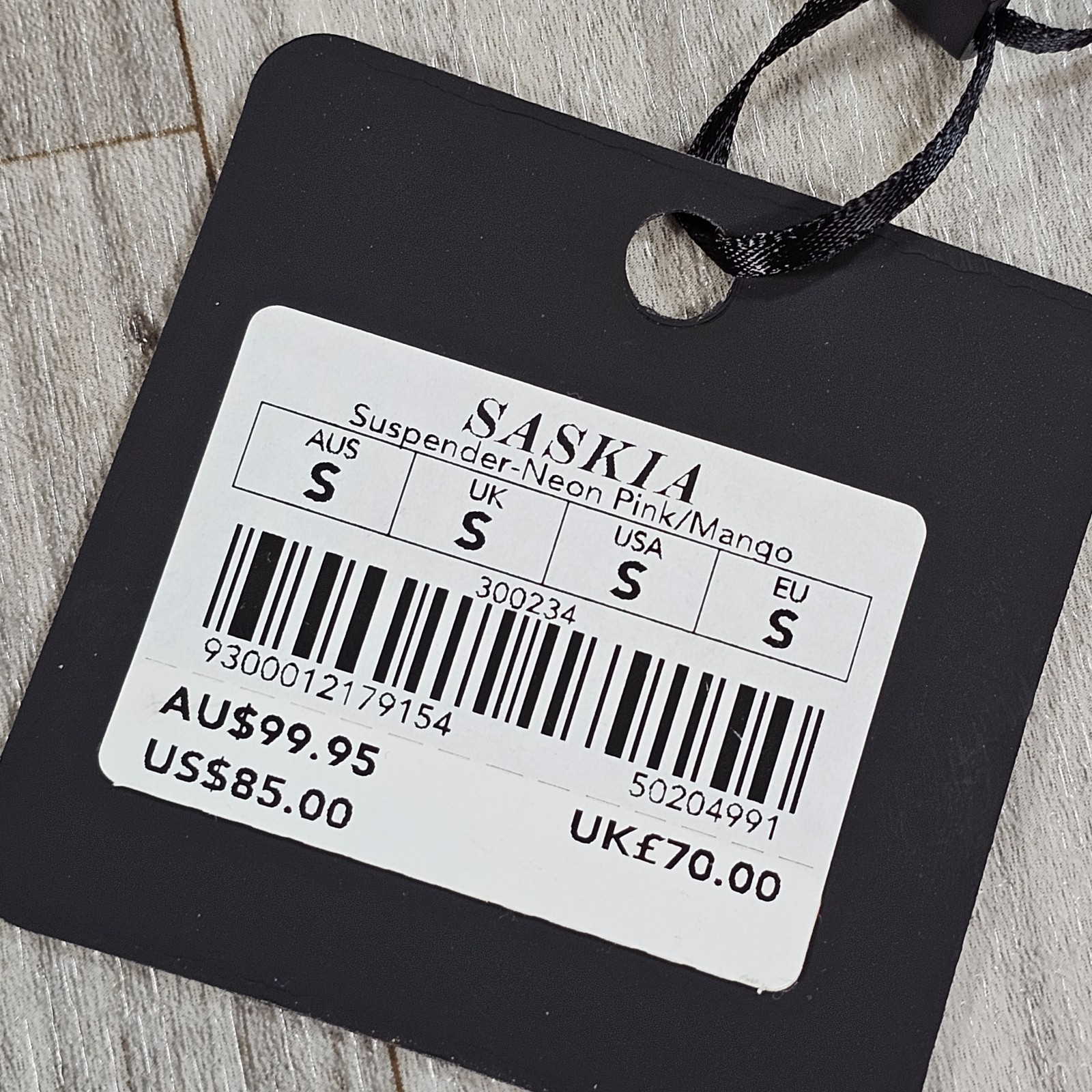 Honey Birdette Saskia Pink and Mango Suspender Garter Belt Size S