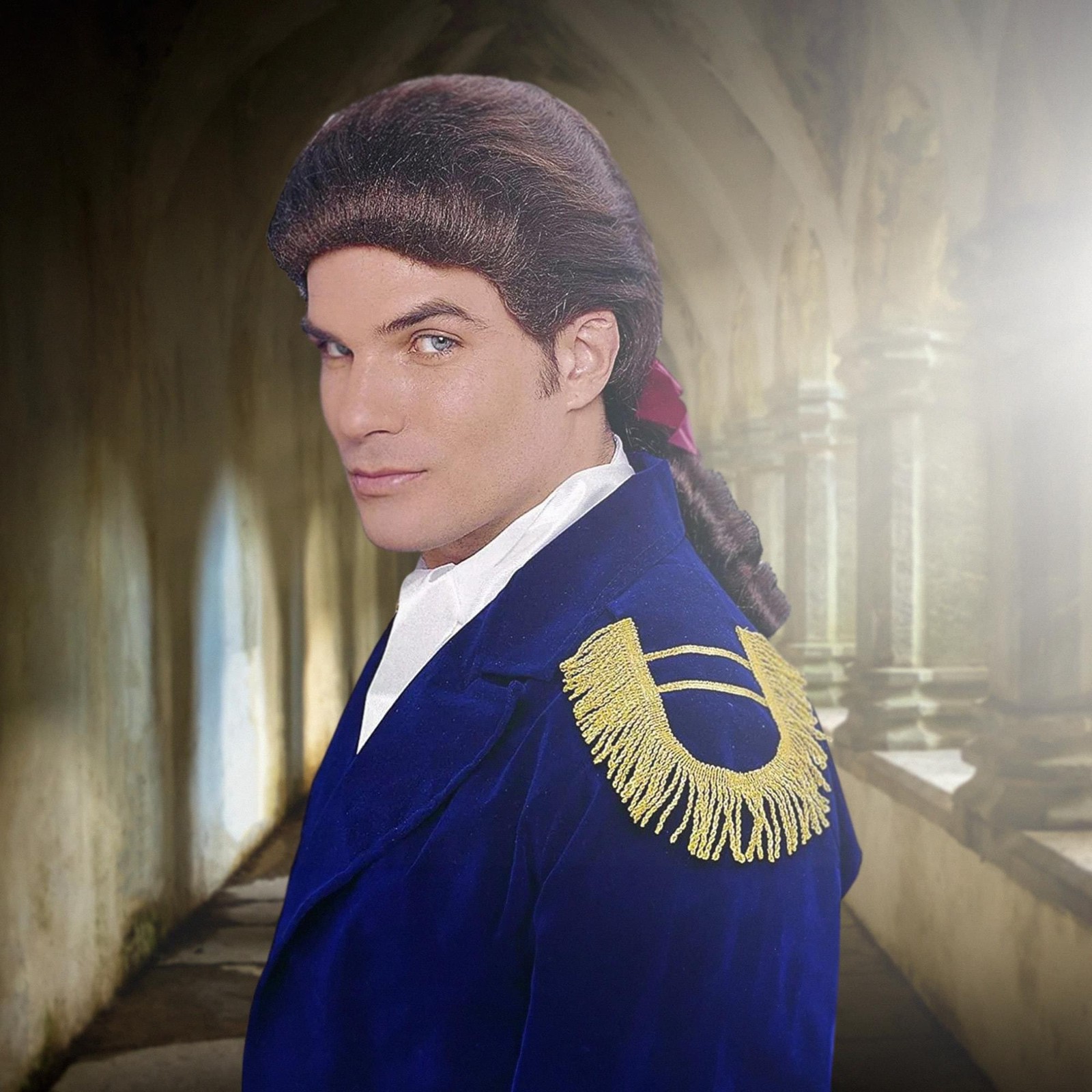 Colonial Duke Men's Costume Wig with Bow - Brown