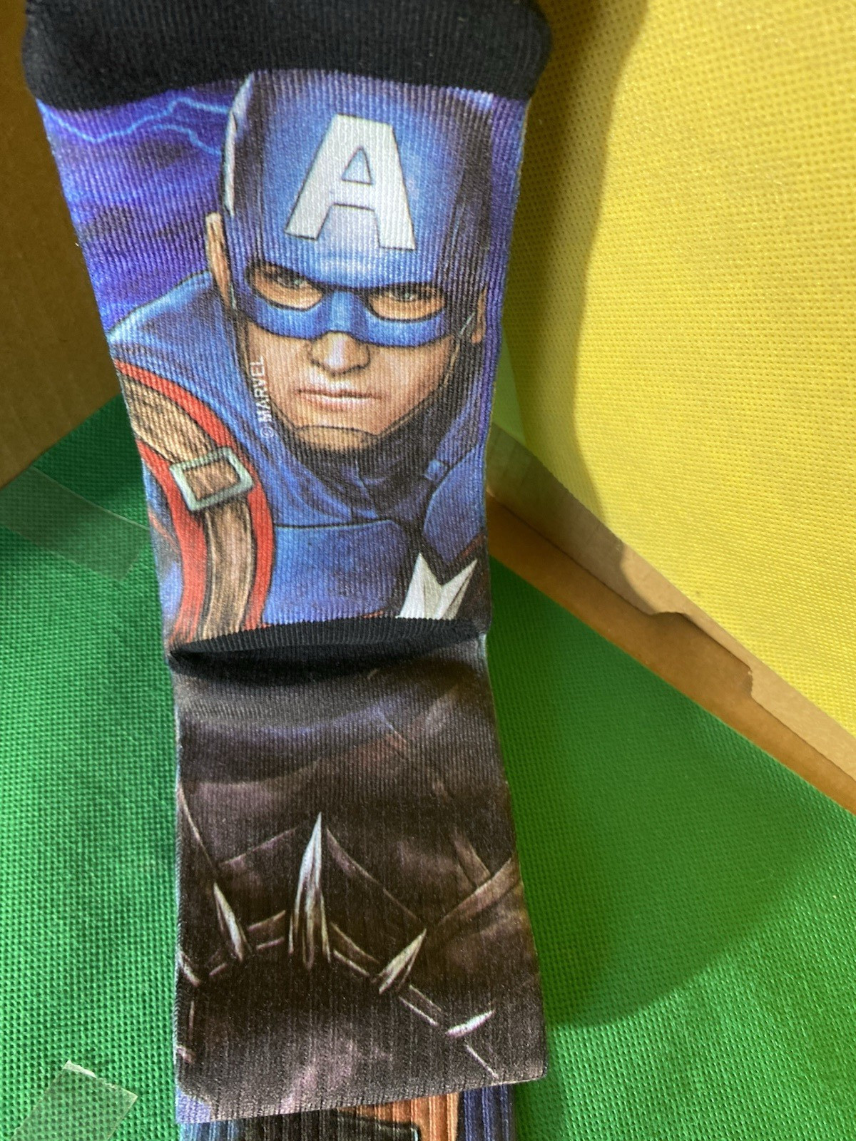 как выглядит Marvel Bioworld Crew Socks Pair Sz 10-13 Captain America/Black Panther/Iron Man фото
