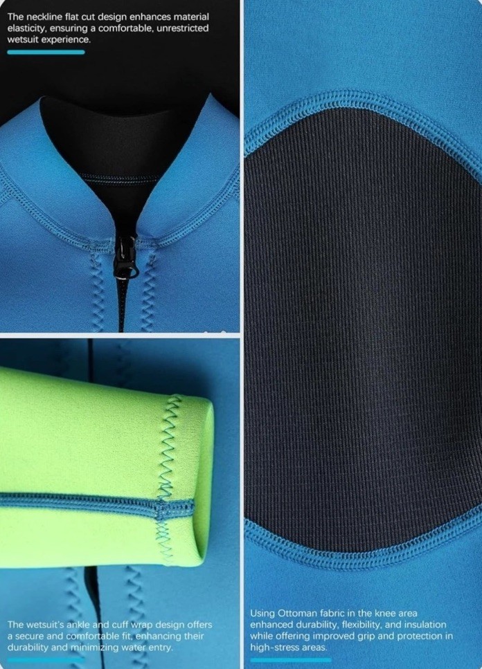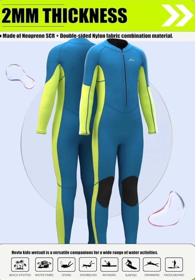 как выглядит Hevto Kids Wetsuit Size 13 2mm Neoprene Full Suit Front Zipper Blue/Green фото