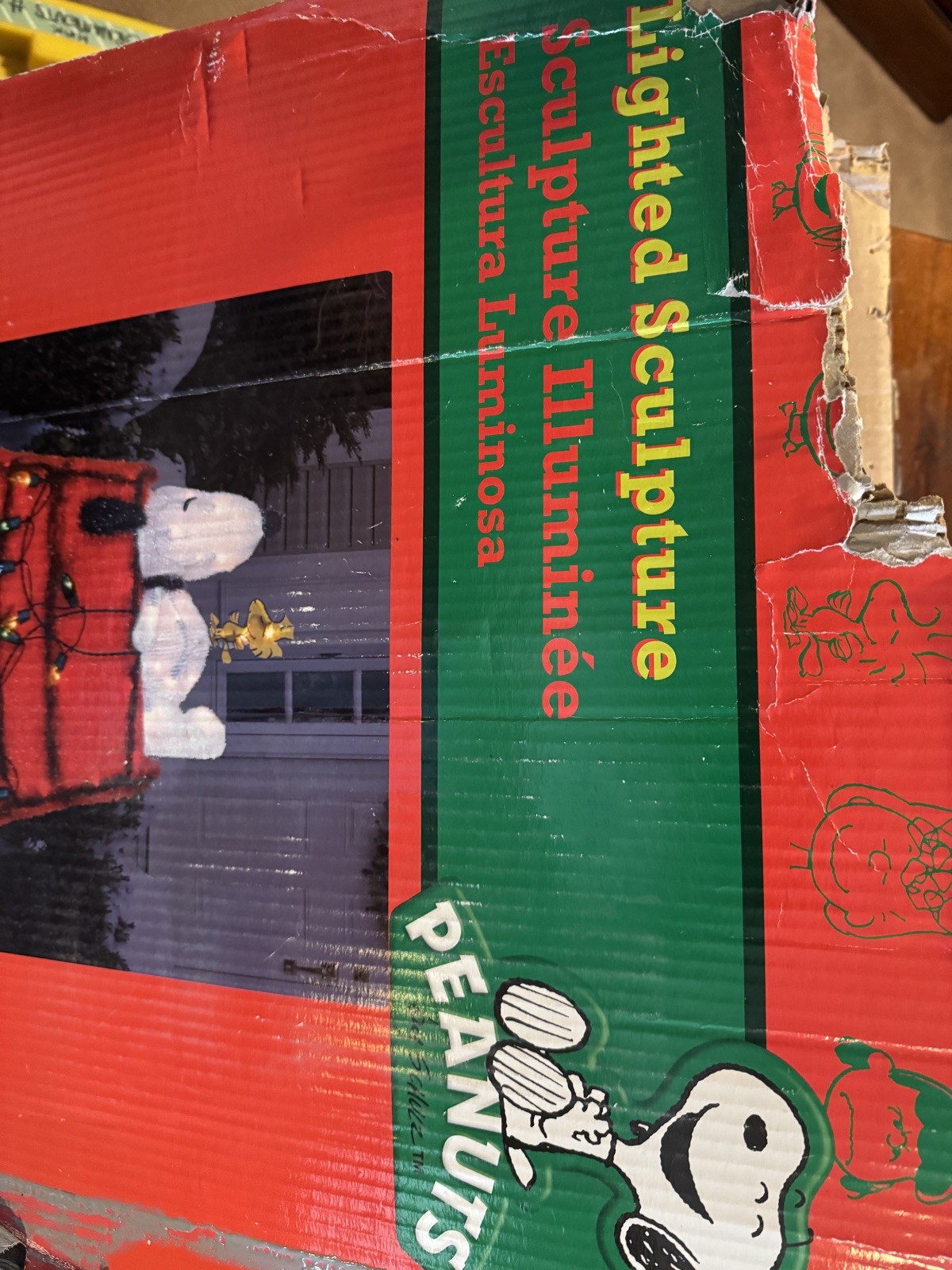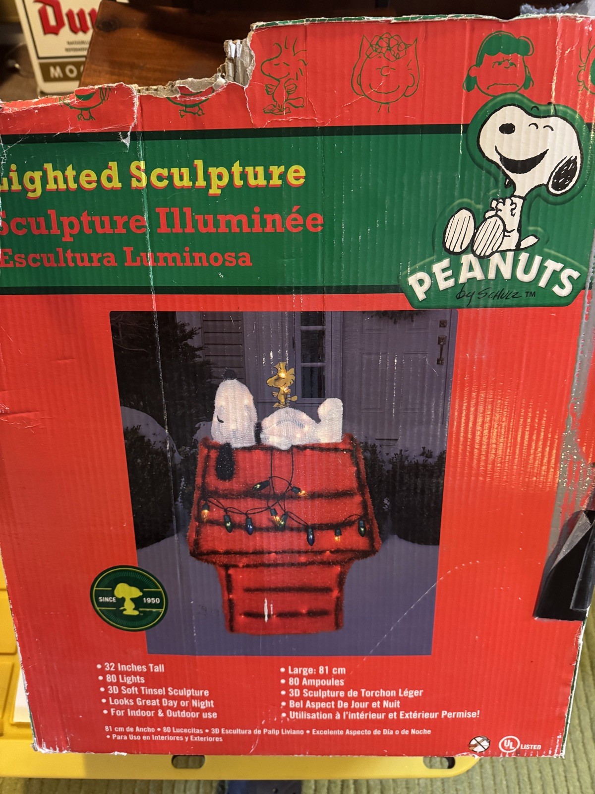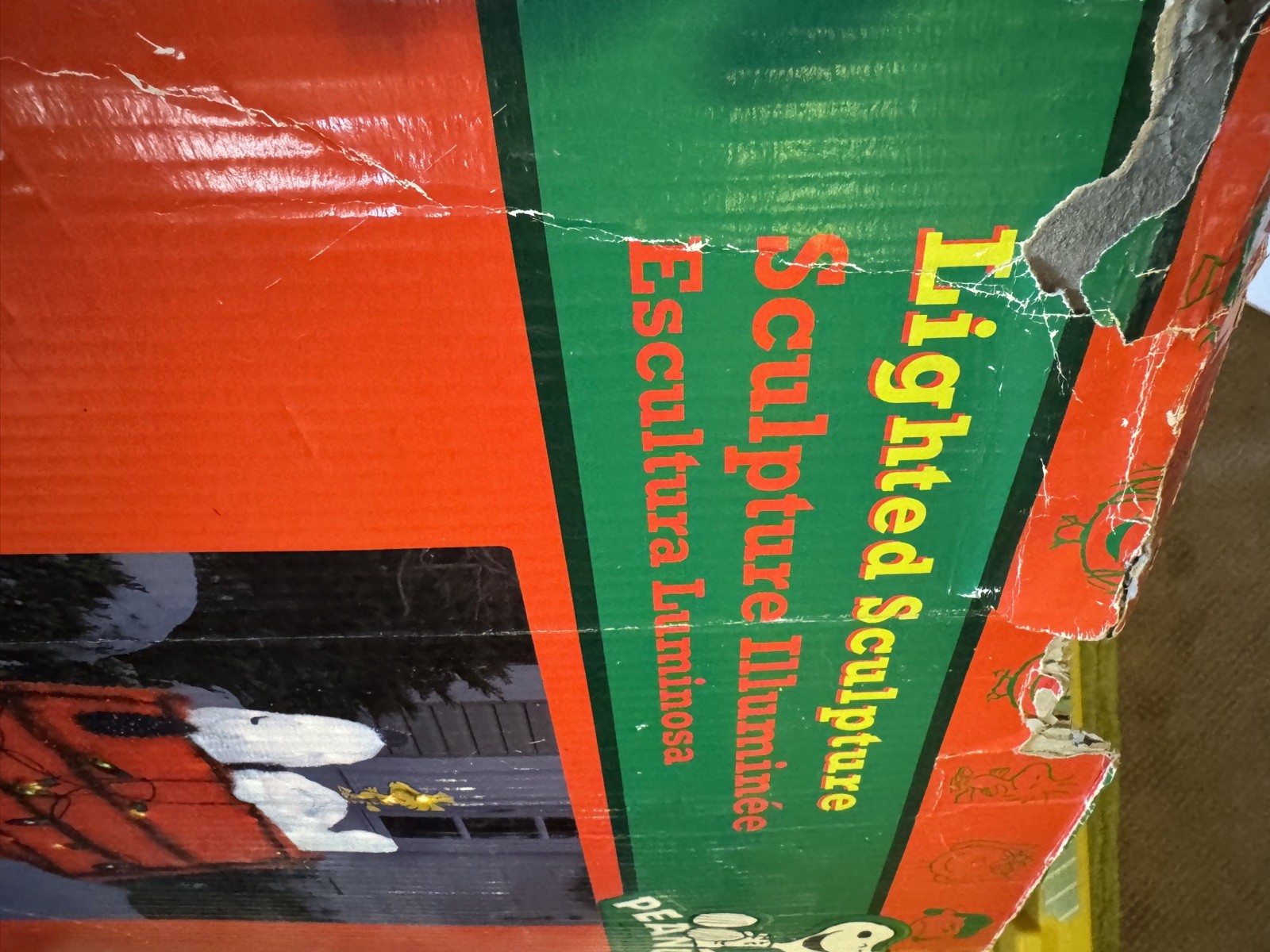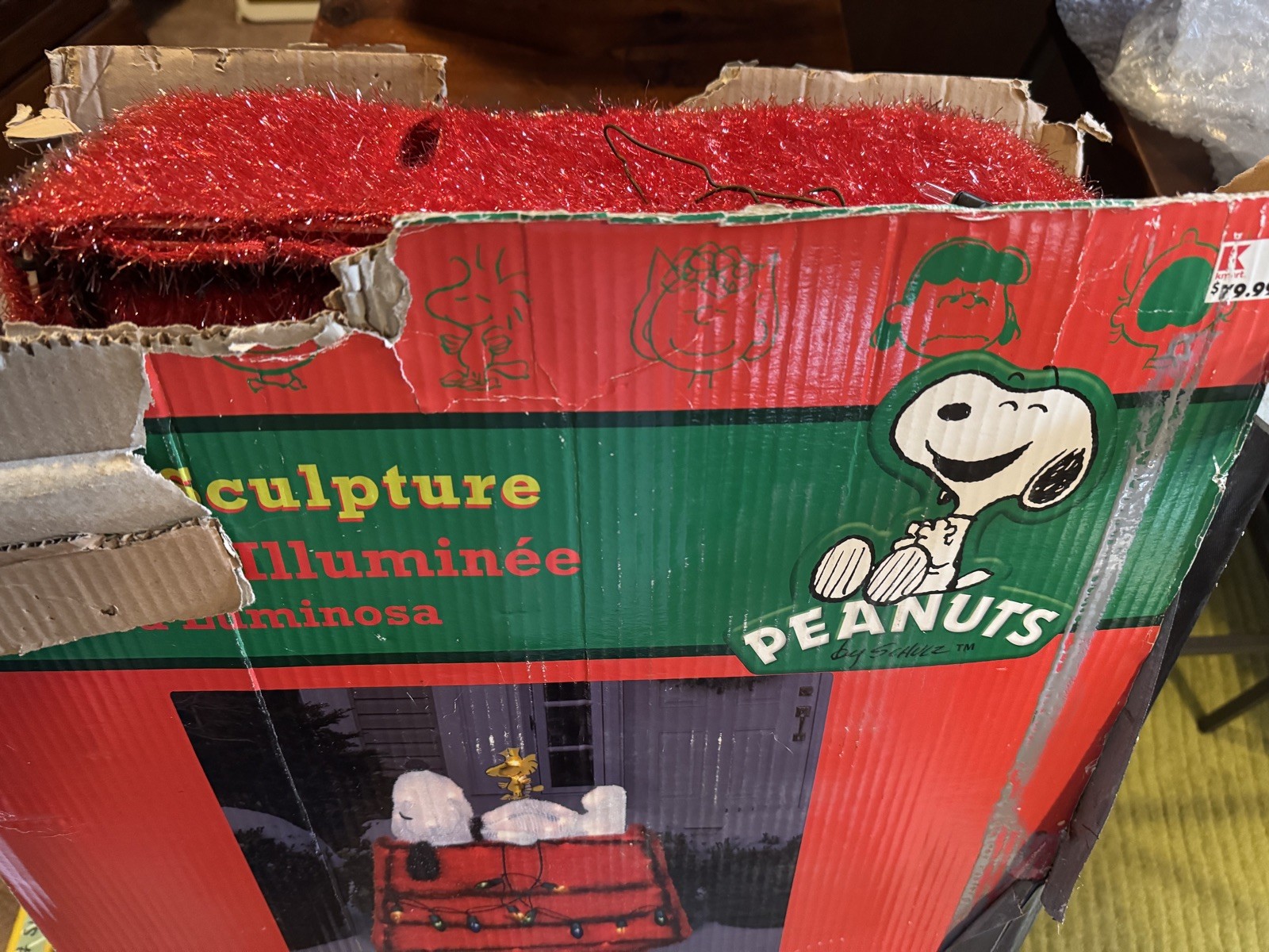 • Peanuts Lighted Yard Art Sculpture Christmas Snoopy On Dog House 32 Tall W /Box