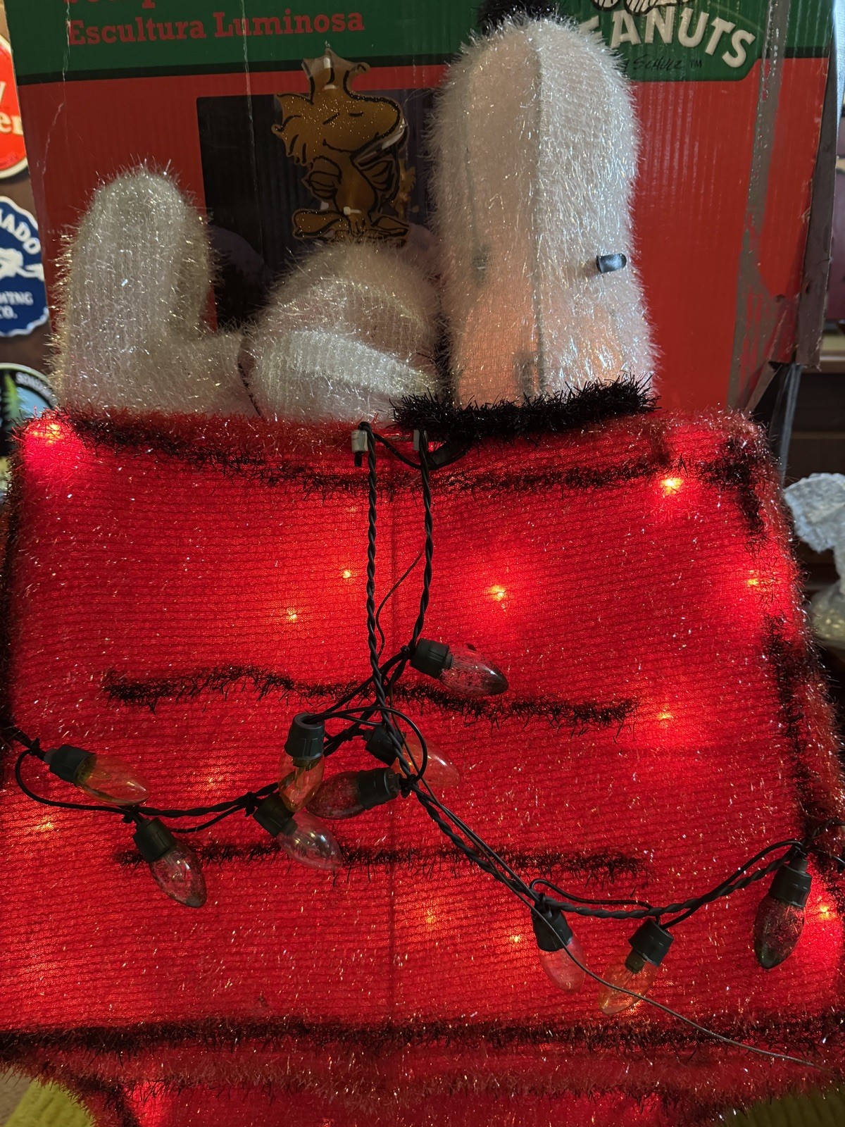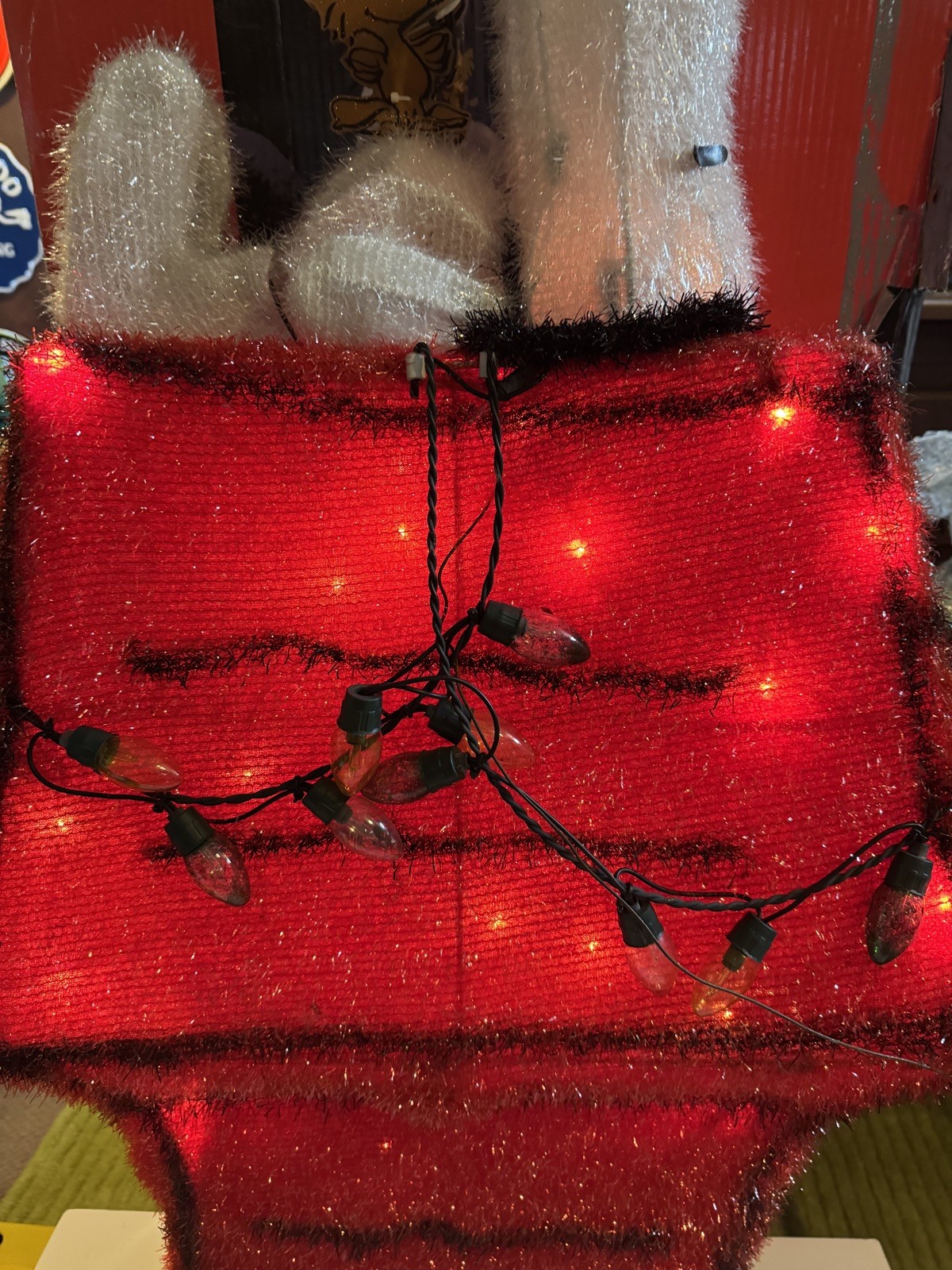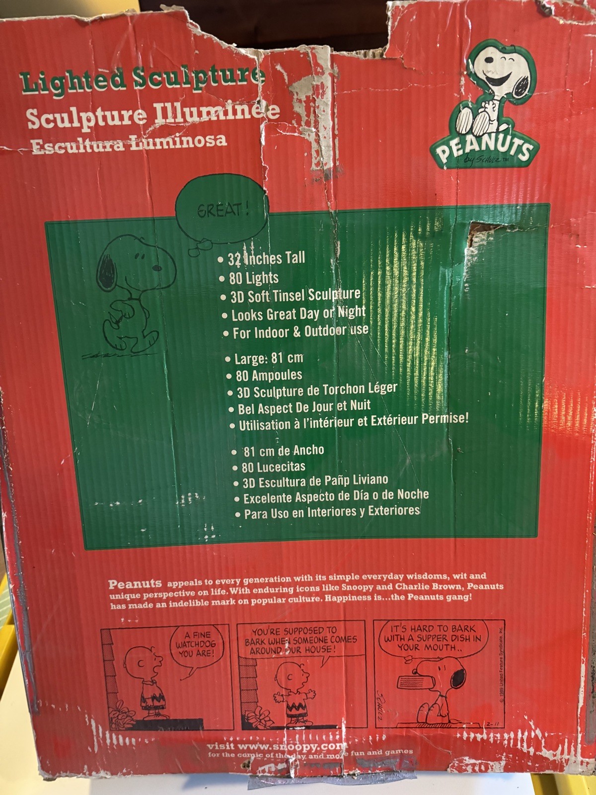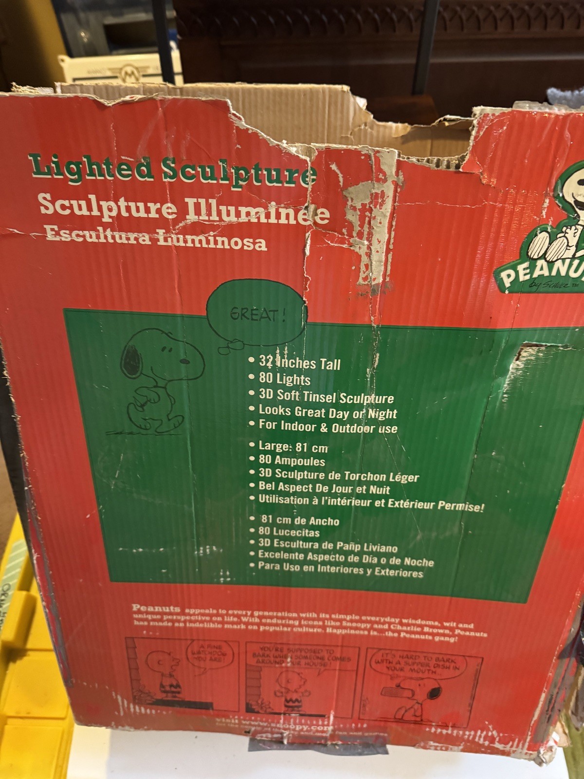 • Peanuts Lighted Yard Art Sculpture Christmas Snoopy On Dog House 32 Tall W /Box