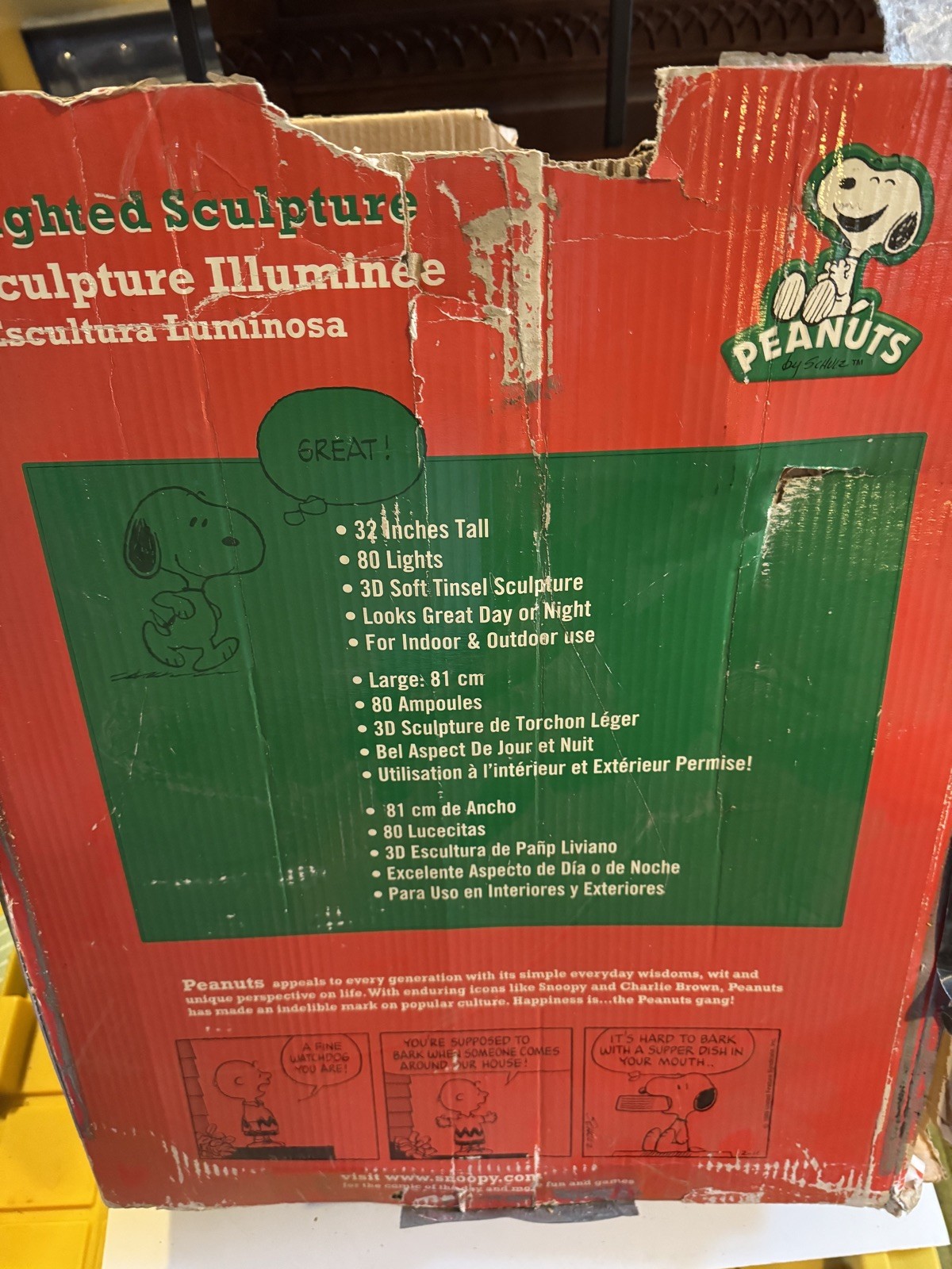 как выглядит Peanuts Lighted Yard Art Sculpture Christmas Snoopy On Dog House 32 Tall W /Box фото