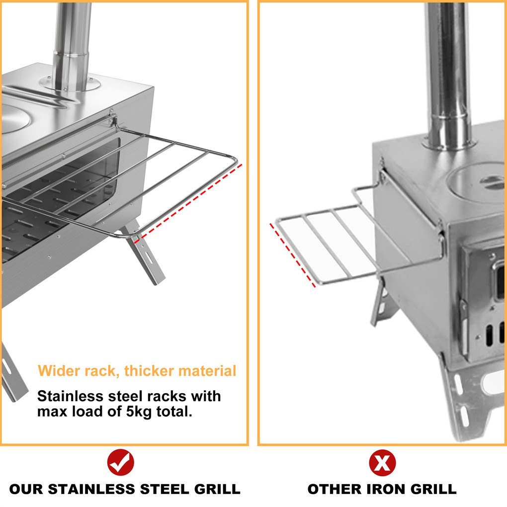 Hot Camping Tent Stove Portable Stainless Steel Wood Burning Stove Outdoor Cook
