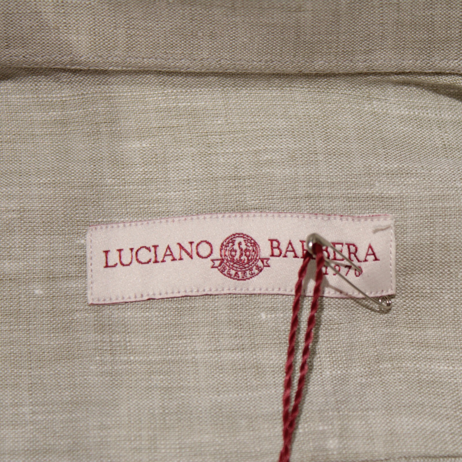 как выглядит Luciano Barbera NWT Casual Button Down Shirt Size M in Tannish Green 100 Linen фото