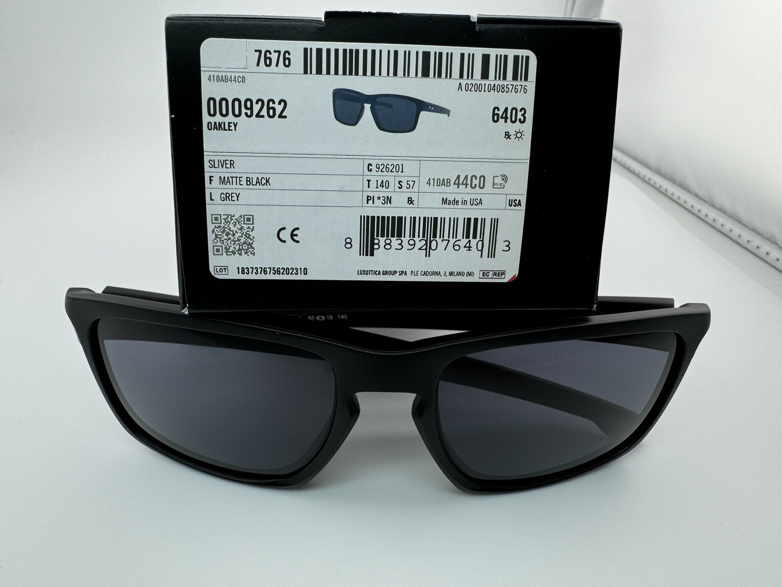 как выглядит OAKLEY SLIVER MATTE BLACK WITH GREY SUNGLASSES OO9262-01 AUTHENTIC NEW фото