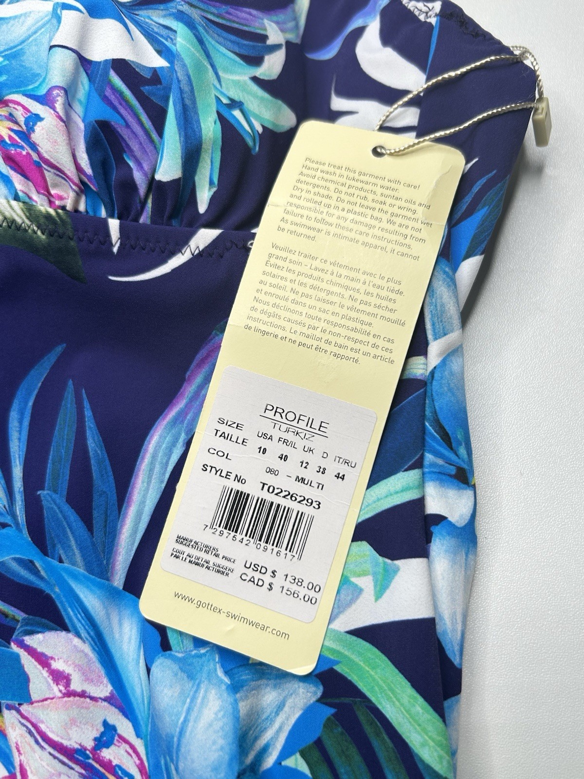 Gottex NWT Profile Turkiz One Piece Swimsuit Blue Purple Floral Size 10 New