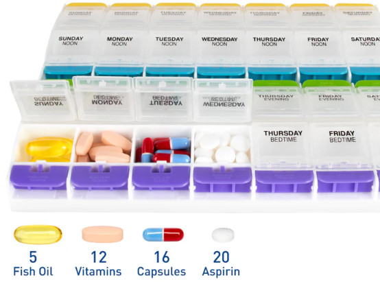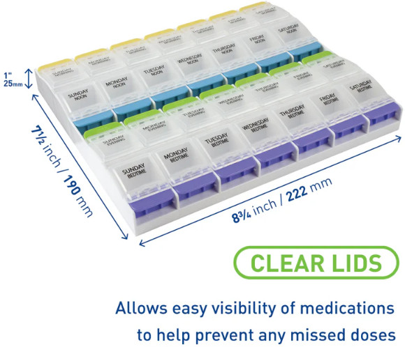 7 DAY WEEKLY PILL PLANNER ORGANIZER Meds Vitamin AM/PM Box 2XL Case Push Button