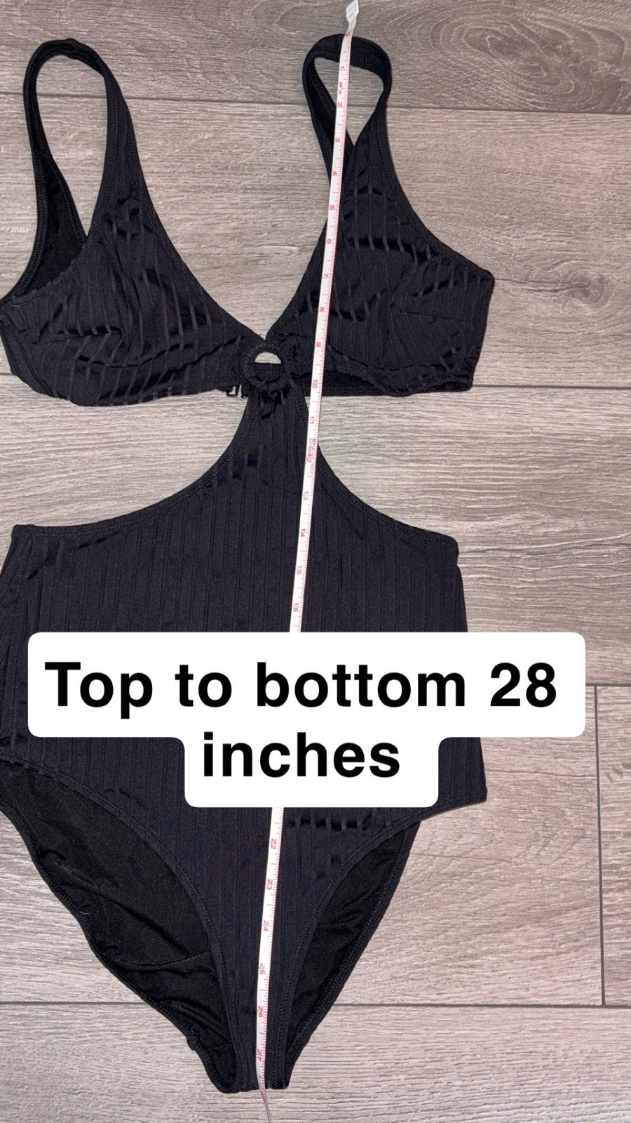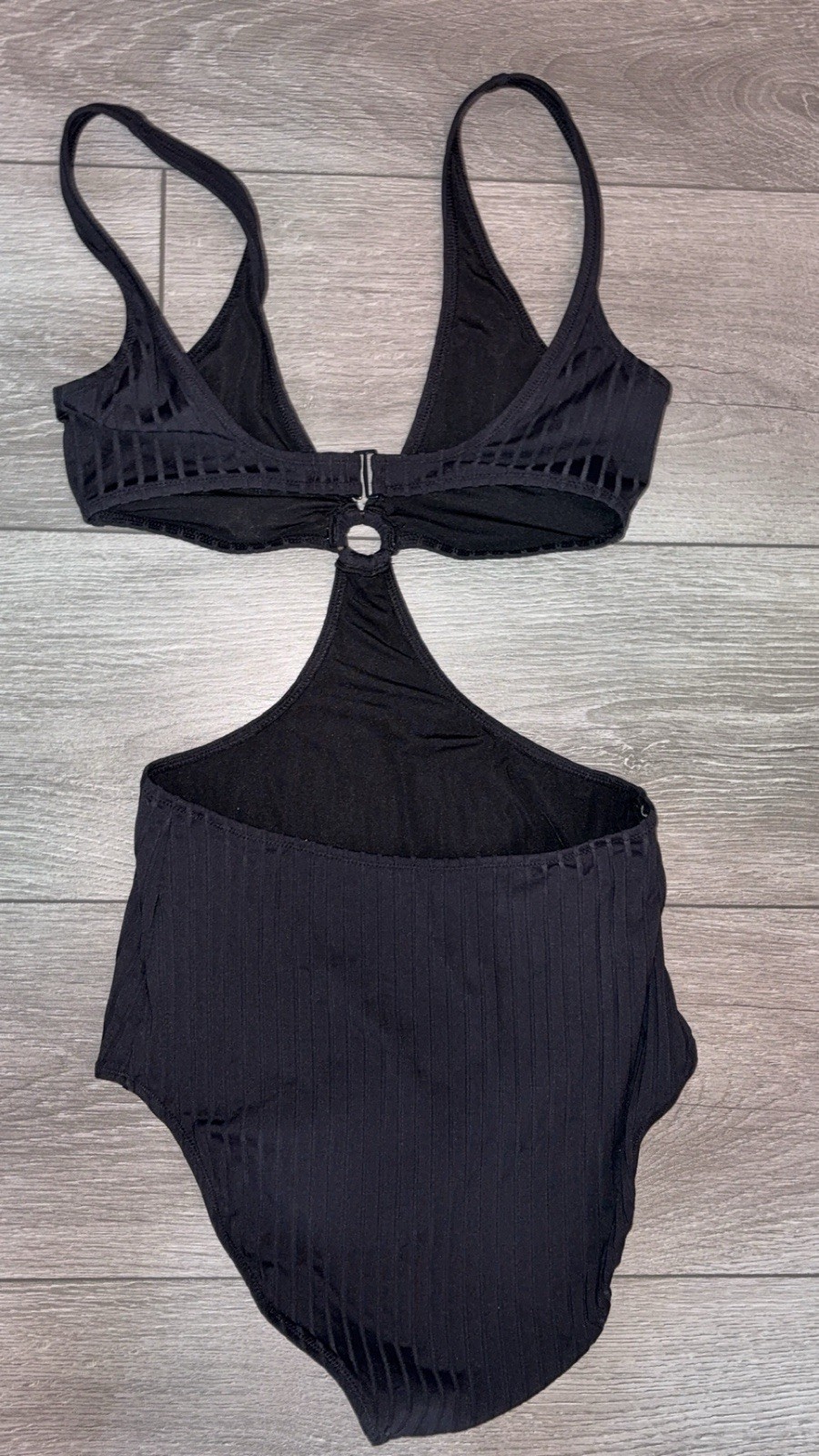 как выглядит Aerie Size Small Long One Piece Swimsuit Bikini Cut Out Sides Black Full Coverag фото