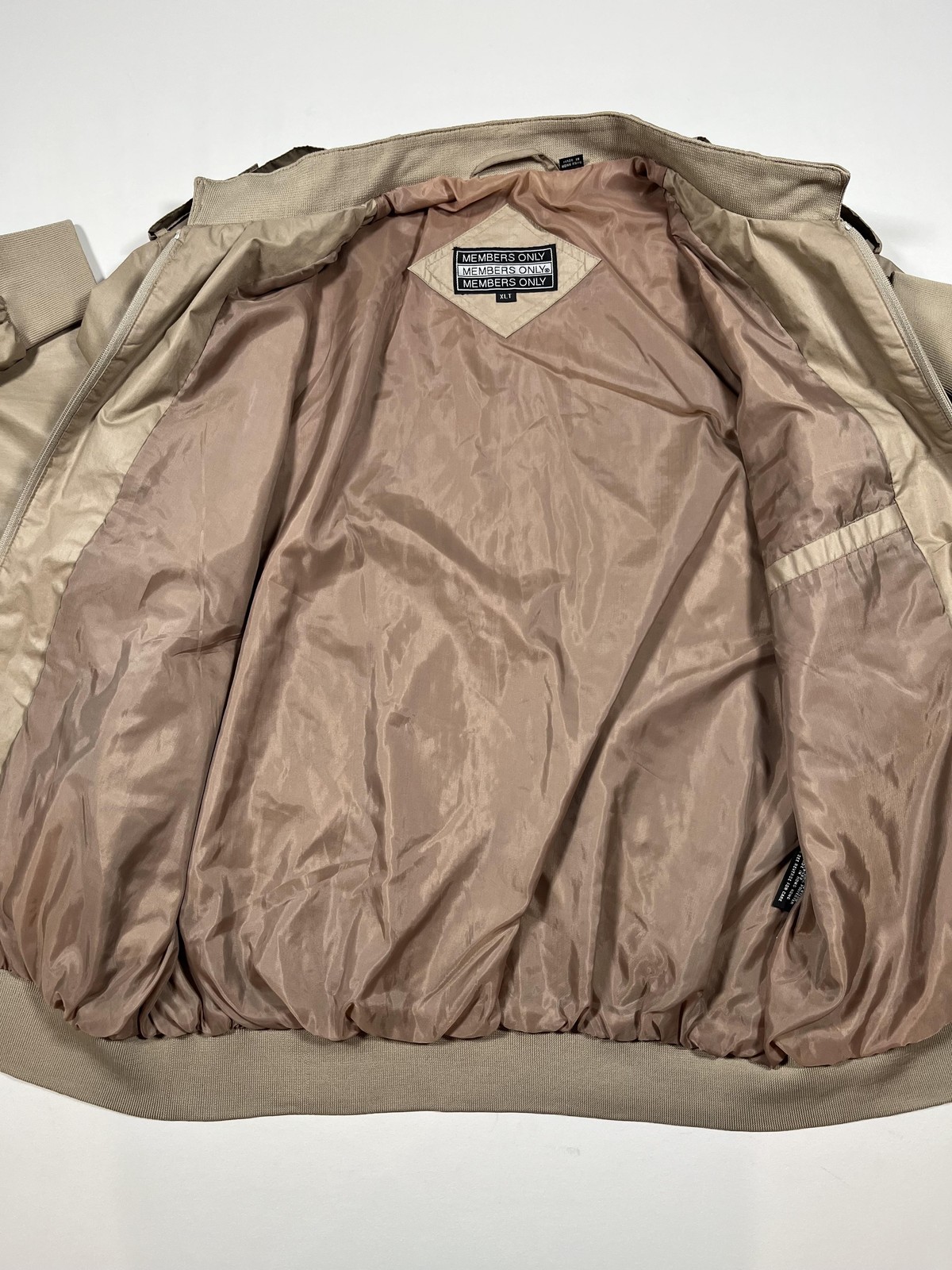 Vintage Members Only Jacket Mens XLT Tan Iconic Racer Bomber Made Hong Kong