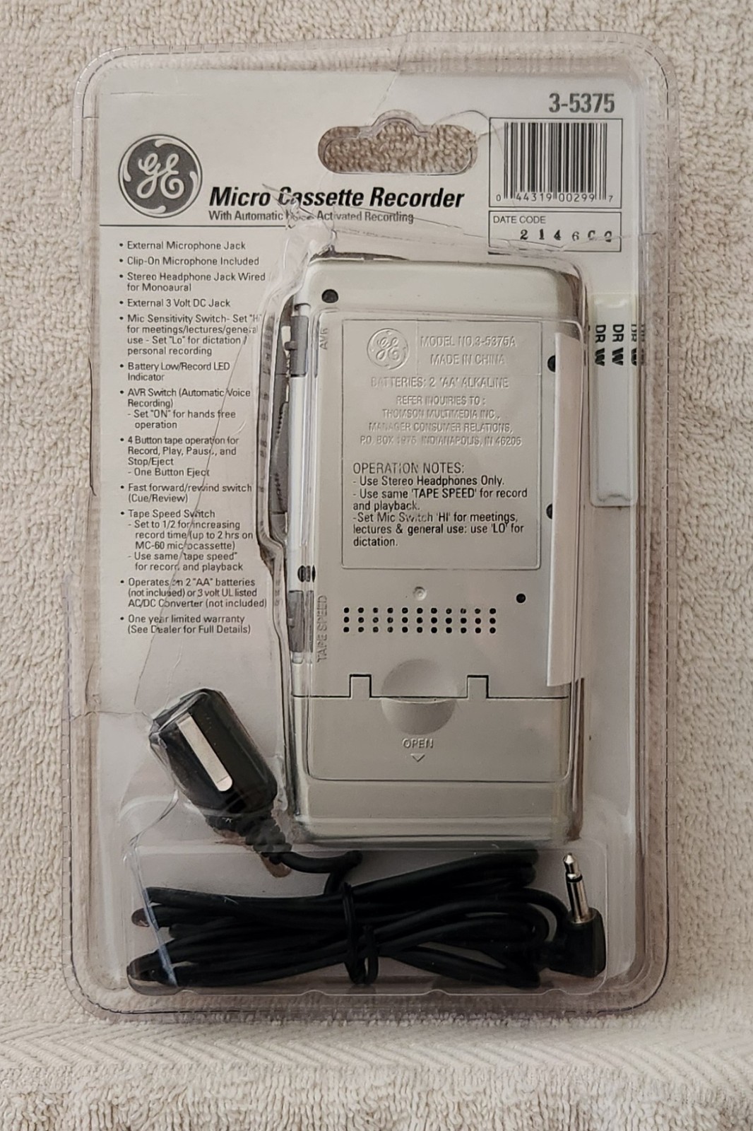 Vintage GE Micro Cassette Recorder Model 3-5375A Auto Voice Activated Recording