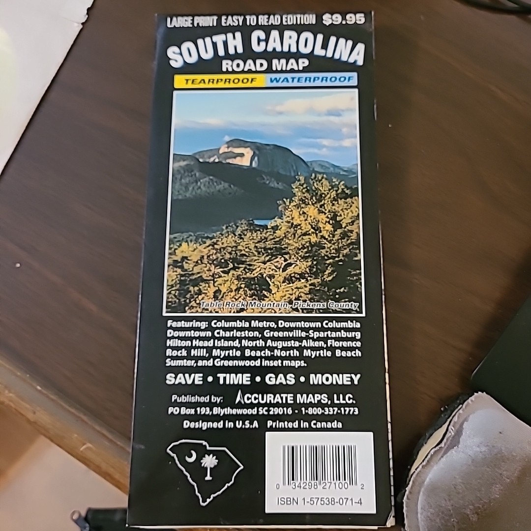как выглядит South Carolina State Road Map Large Print Easy To Read Tearproof Waterproof 2007 фото