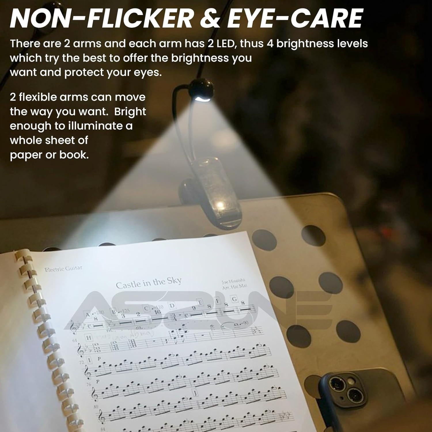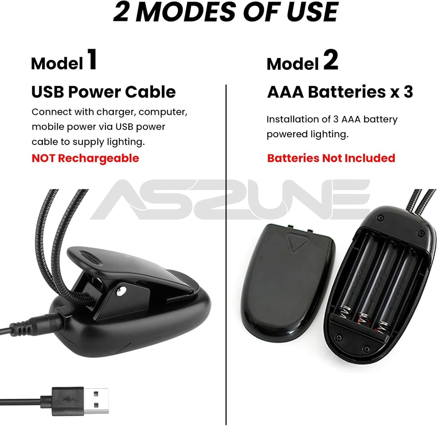 Music Stand Light 2Pack, Music Stand Light Clip On, Book Lights USB and AAA B...