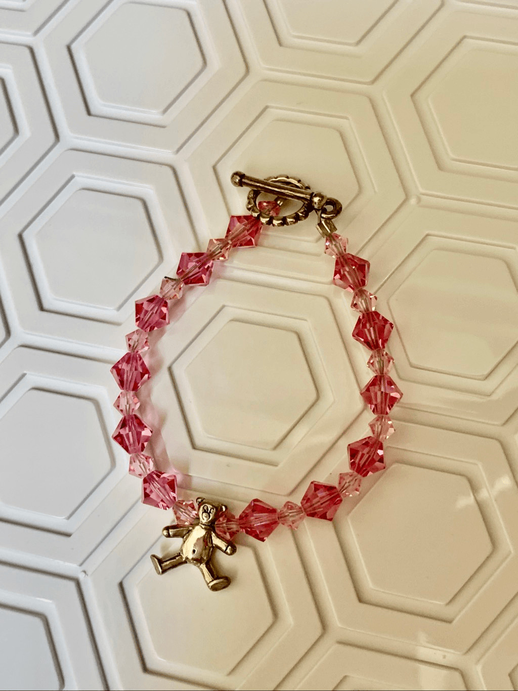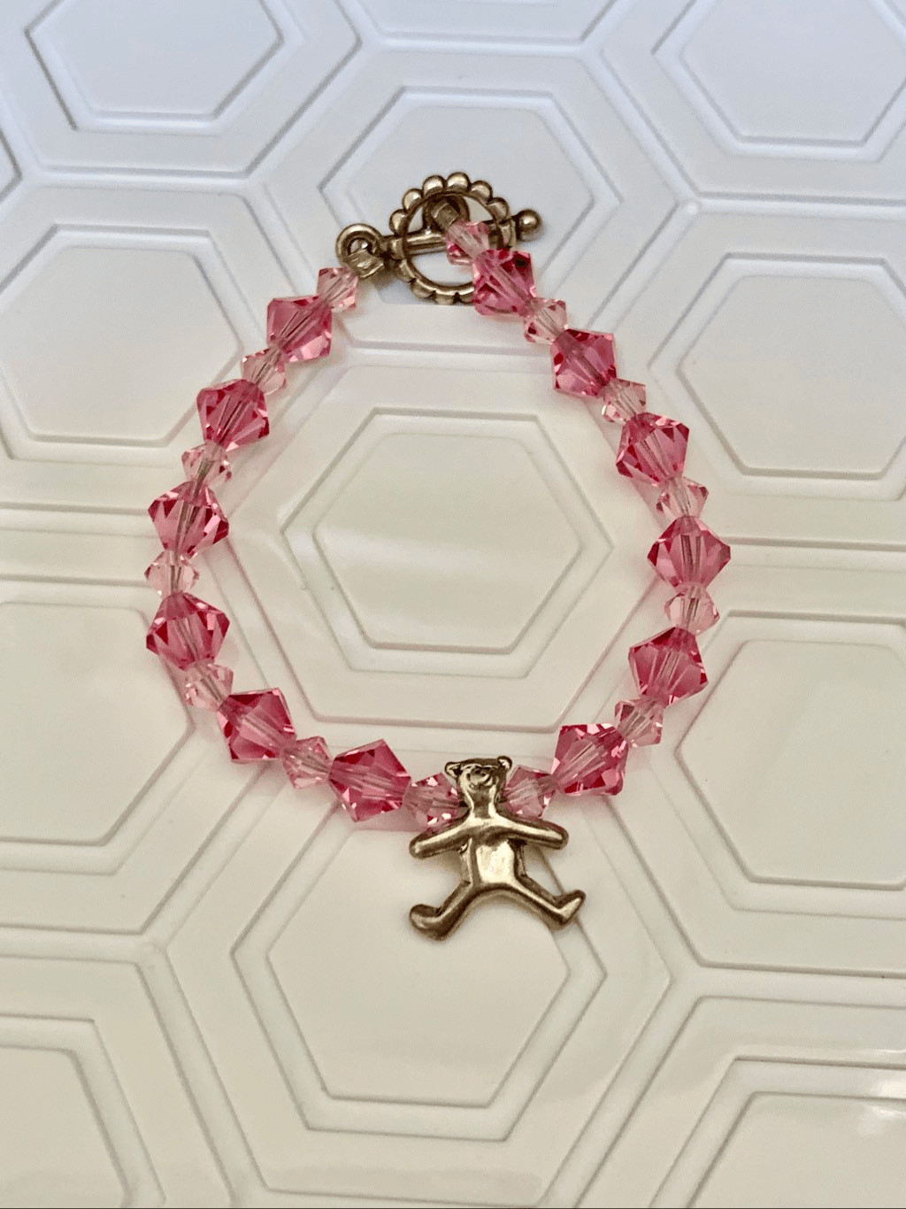 Child s Bracelet Pink Crystals Teddy Bear Charm childs bracelet teddy bear