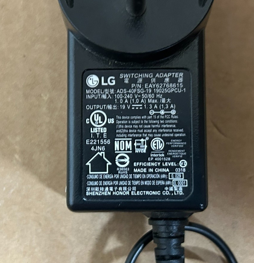 Genuine LG AC Switching Adapter Power Supply EAY62768615 19V DC 1.3A