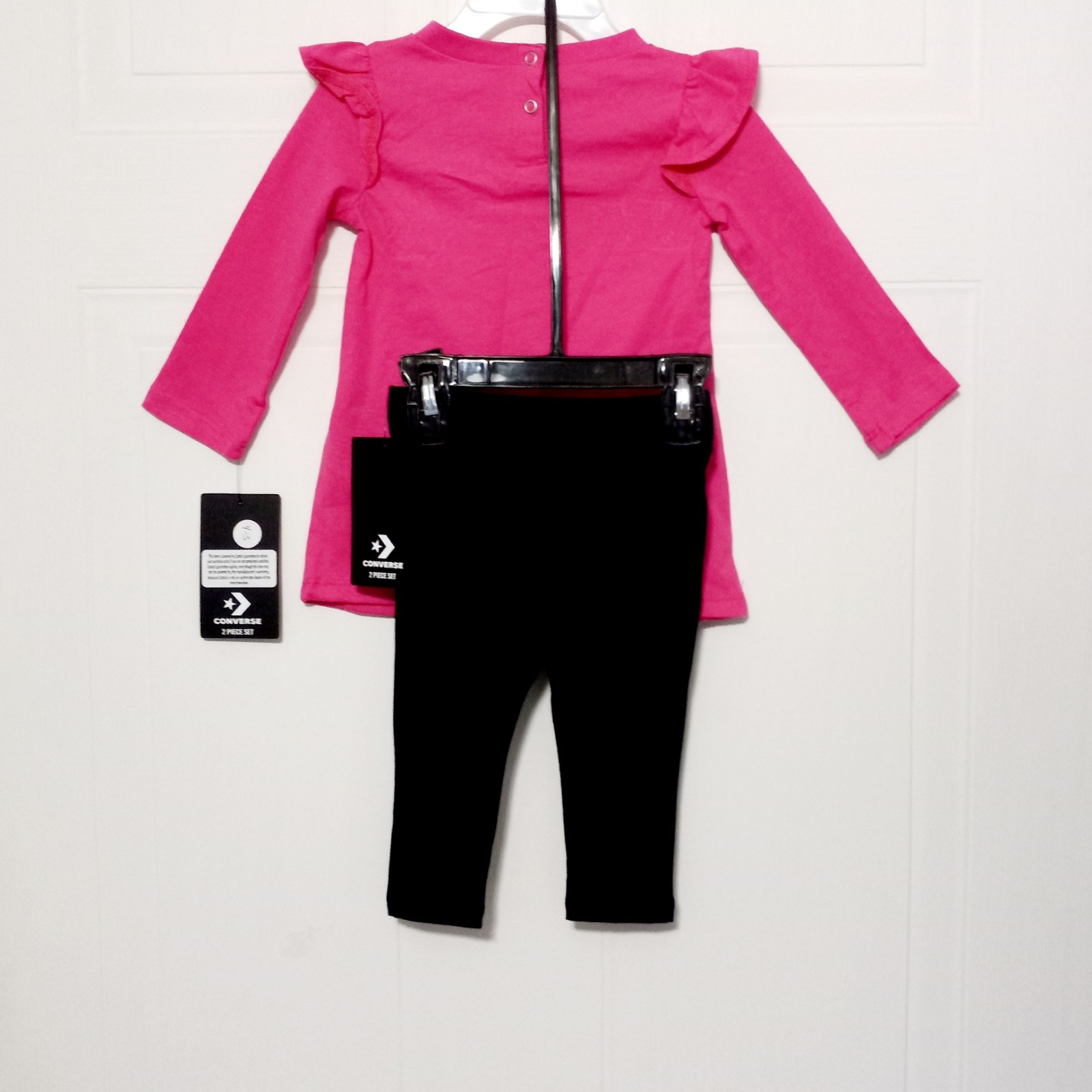 NWT Converse All Star Girls 12 Months Leggings Set Long Sleeve Outfit Pink Black
