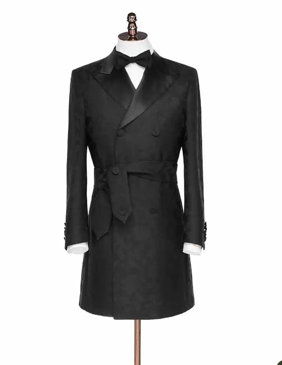 как выглядит Handsome Mens Peaked Lapel Double Breasted Jacquard Groom Wedding Tuxedos фото