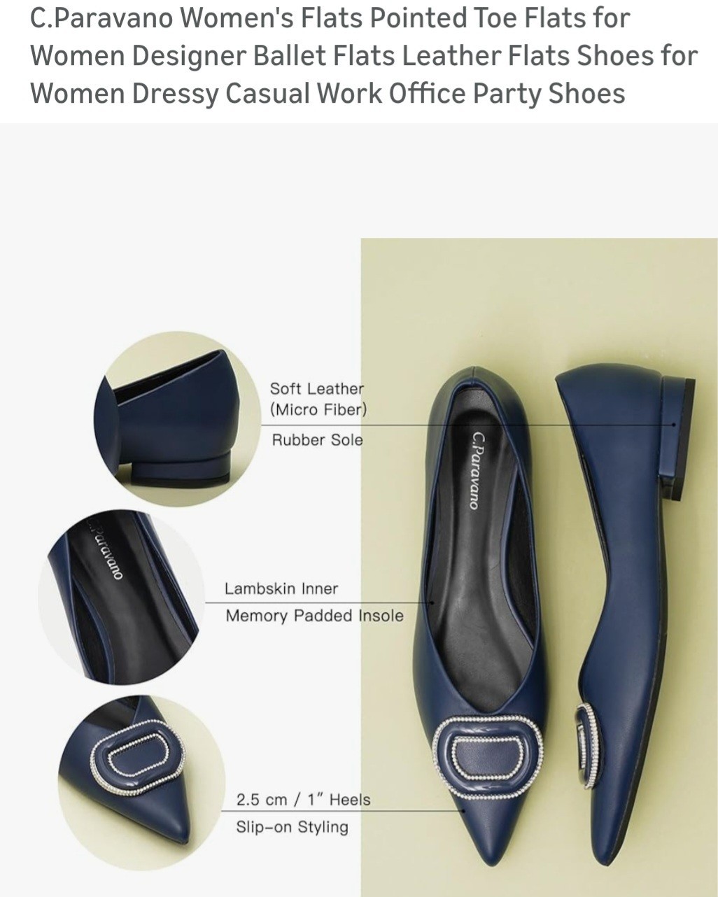 как выглядит C.Paravano Womens Flats Pointed Toe Flats for Women Designer Ballet Flats Shoes фото