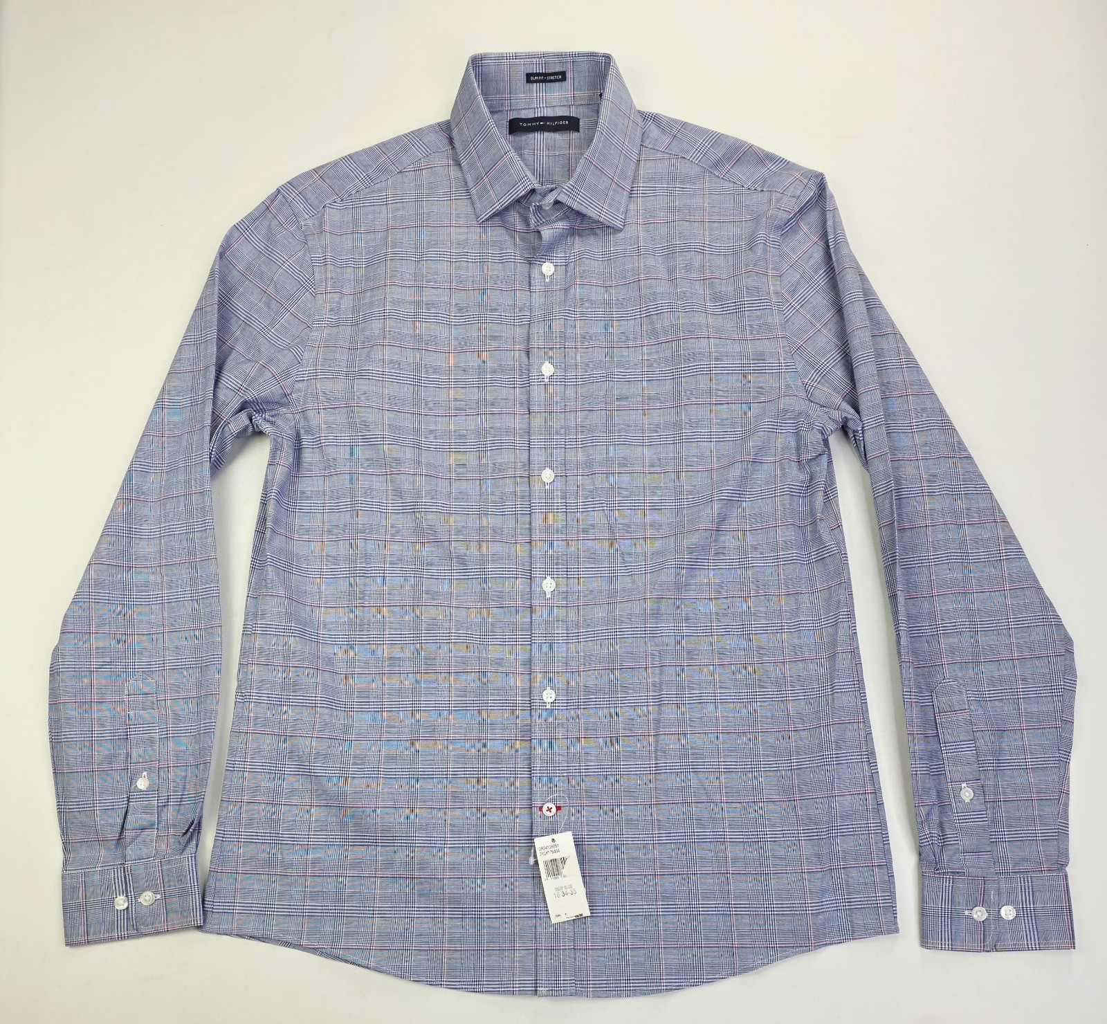 Tommy Hilfiger Slim Fit Stretch Size 16 34/35 Large Mens Blue White Plaid NWT