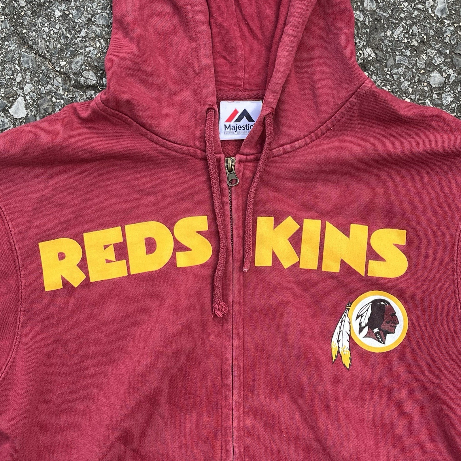 • Majestic Washington Redskins Burgundy Gold Hoodie M Full-Zip Sweatshi