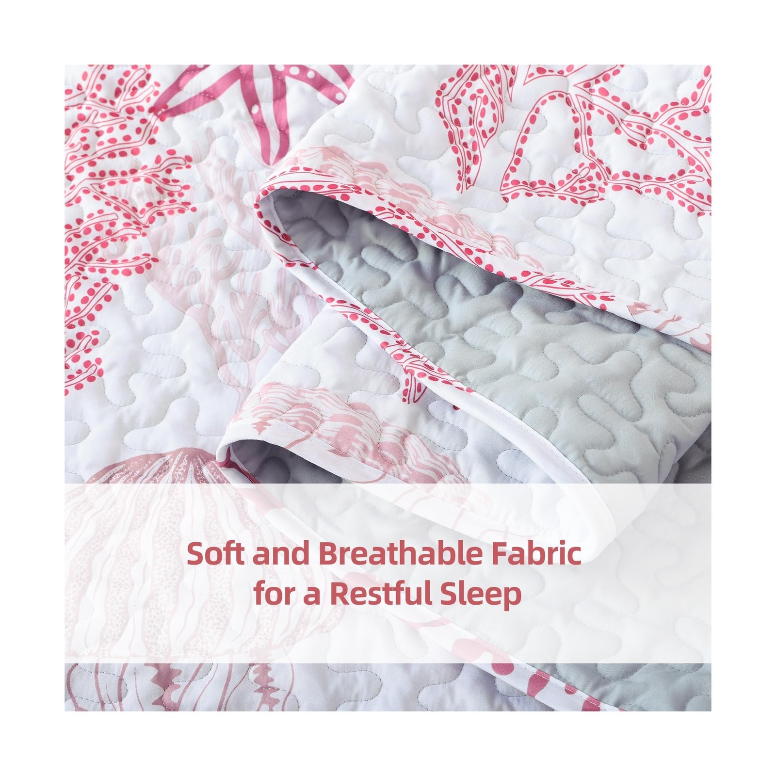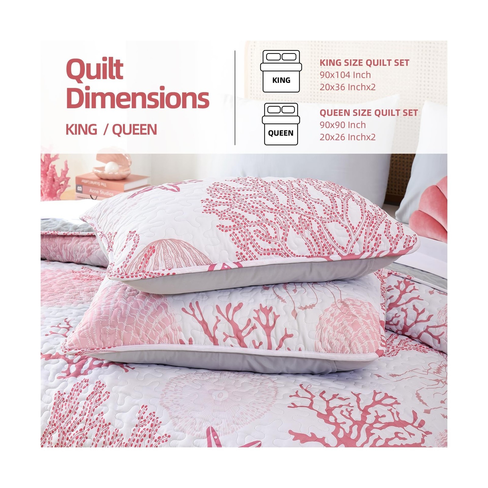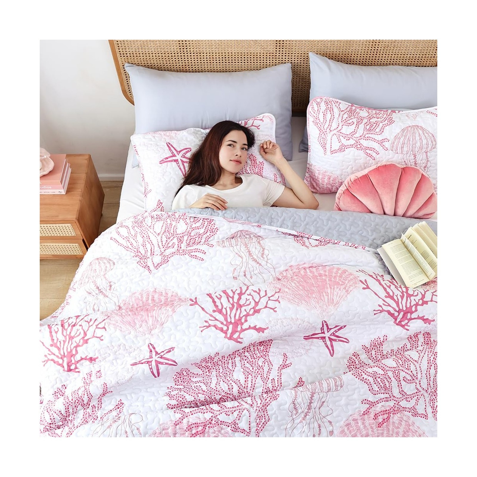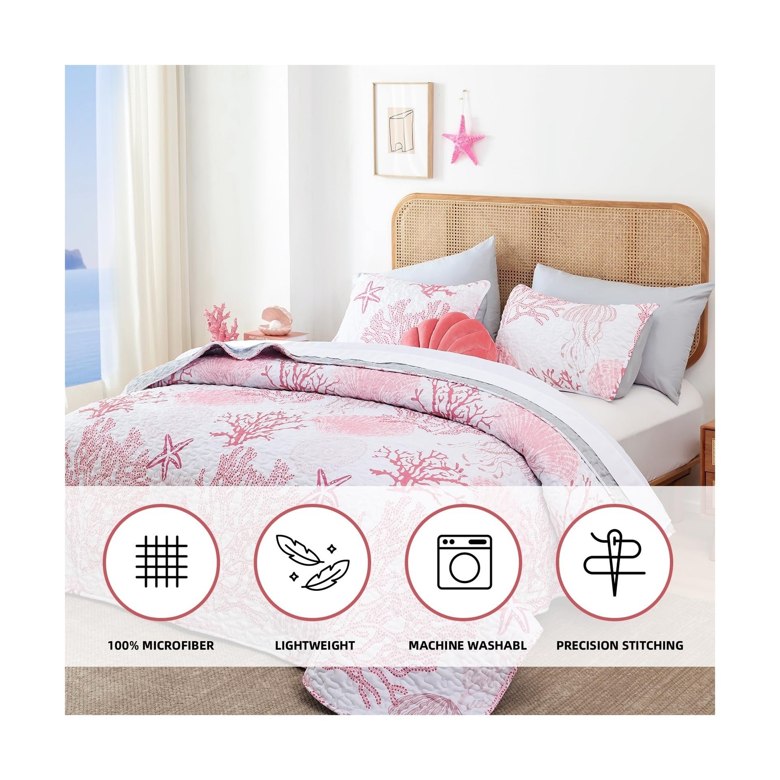 weigelia Coastal Quilts Bedding Set Queen Size - Pink Summer Nautic... Fast Ship
