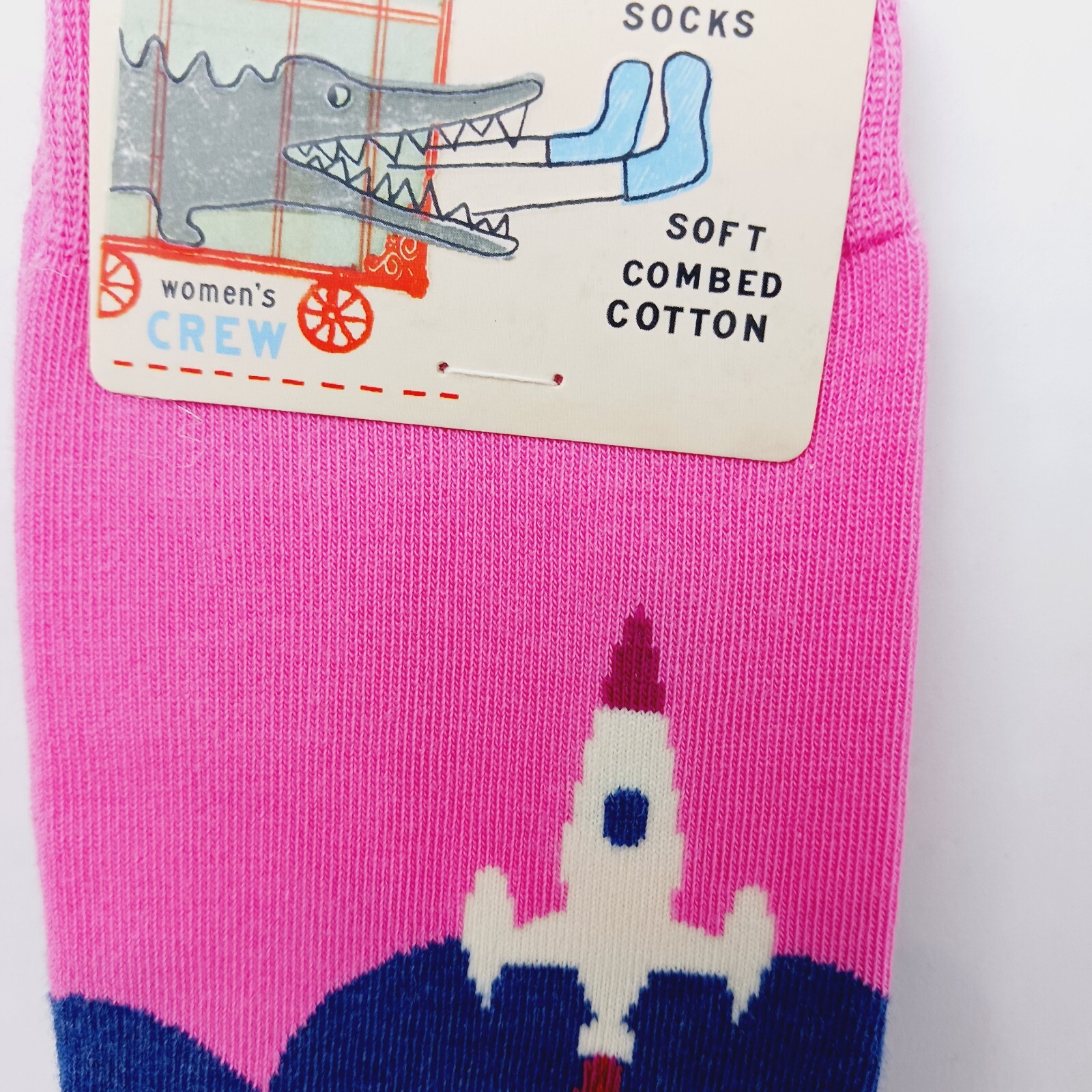 как выглядит Sock Blue Q Crew Women Boy Rocket Ship Heading Next Mistake Fast Blast NWT NEW фото