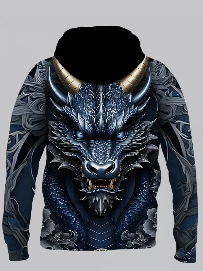 Dragon Full-Body Print Hoodie, Casual Style - Adults Youth
