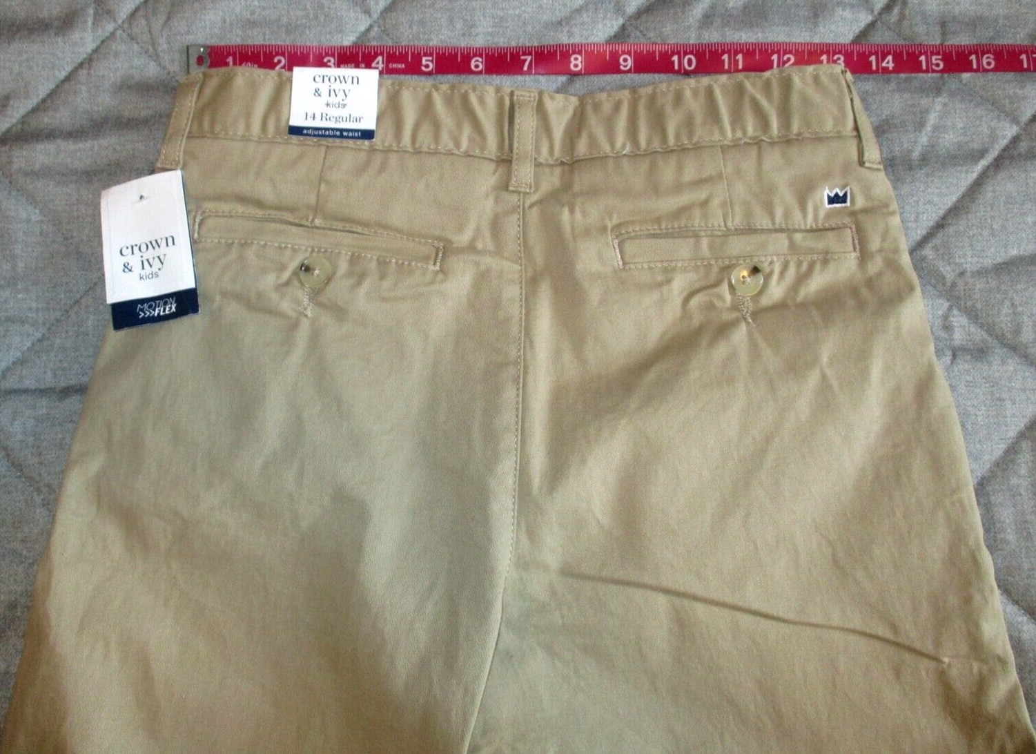 CROWN IVY Boy's Adjustable Waist Khaki Shorts Size 14 New With Tags.
