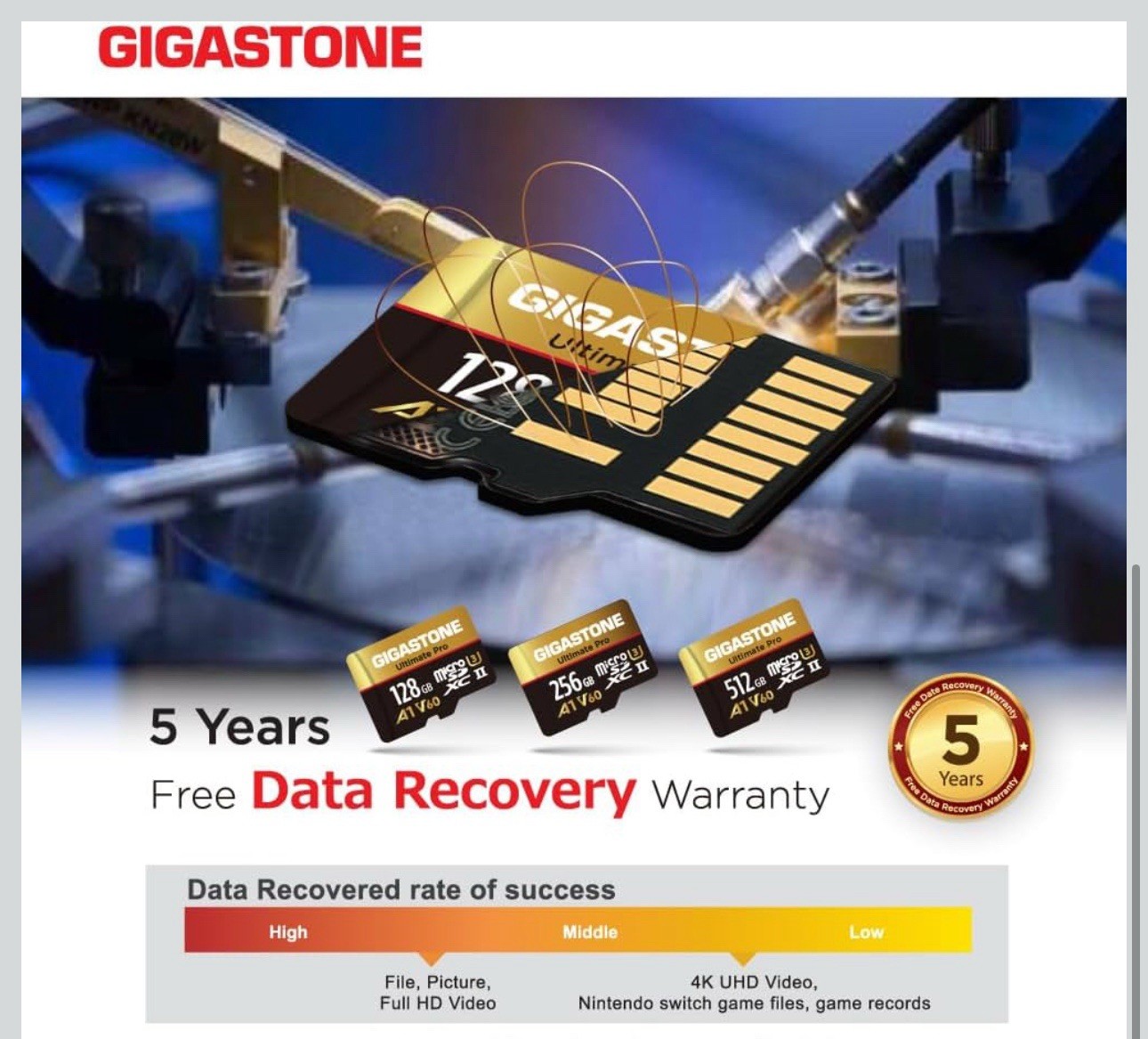 5-Yrs Free Data Recovery GIGASTONE 128GB Micro SD Card, Ultimate Pro, Micro