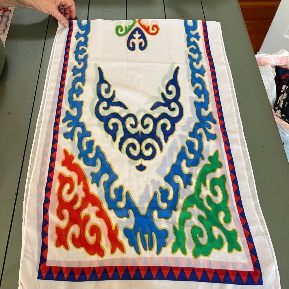 как выглядит Multicolor Print Sheer Scarf Lightweight Colorful Fun Playful Contemporary фото