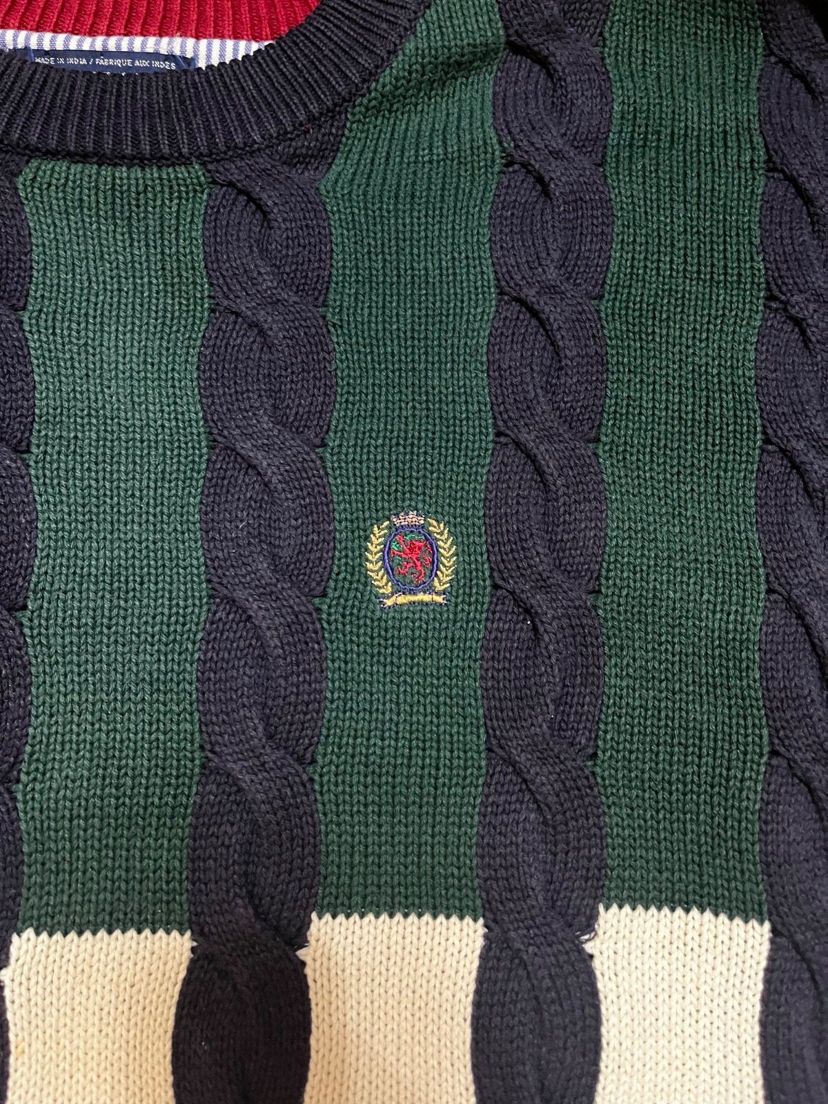 как выглядит Vintage 90s Tommy Hilfiger Striped Embroidered Logo Knit Sweater Sz XL фото