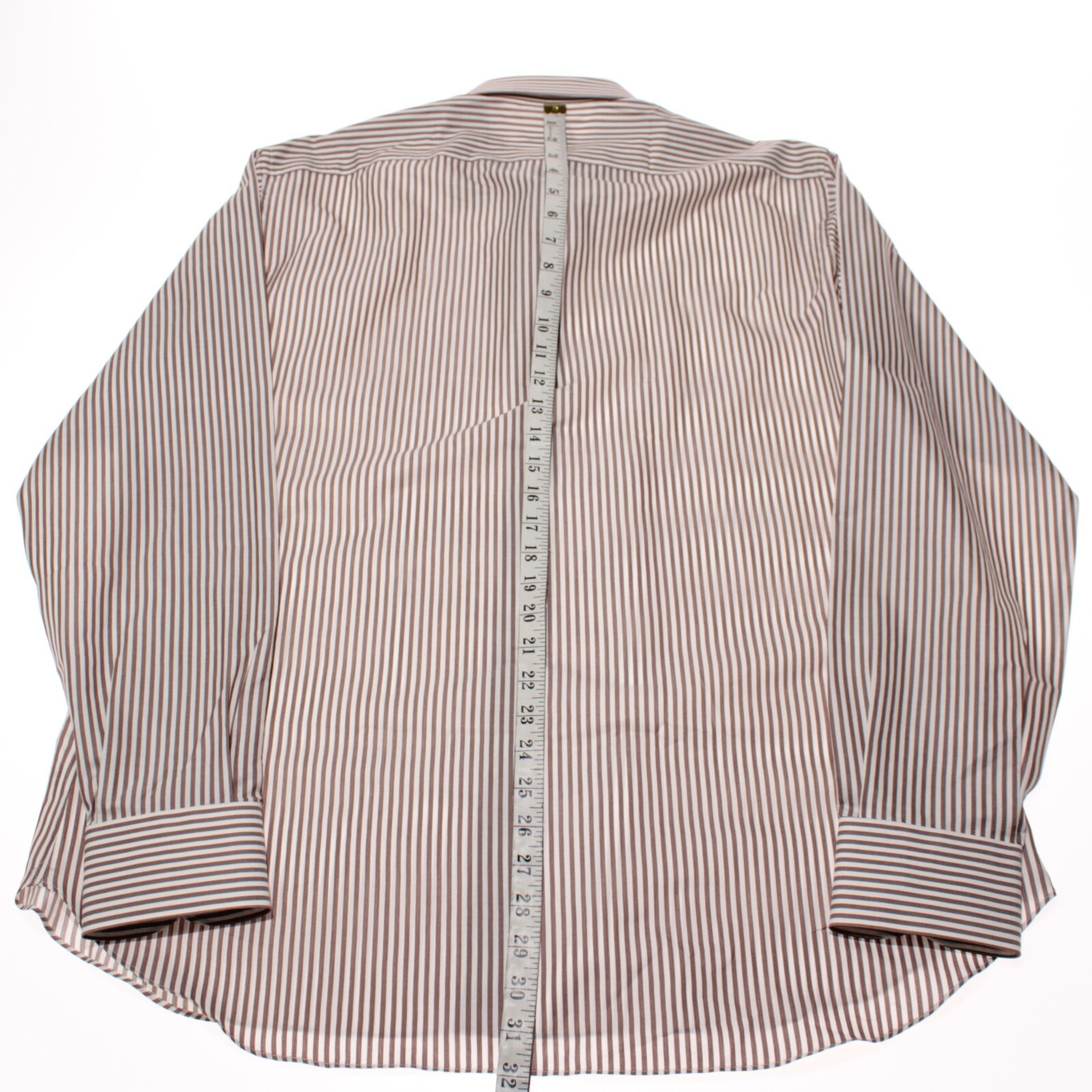 как выглядит Fray NWT Byron Dress Shirt Size 44 17.5 in Brown White Stripes 100 Cotton фото