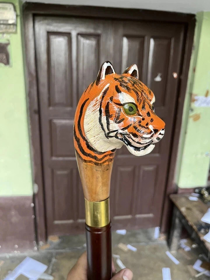 wooden walking stick hand carved Beautiful Tiger wooden walking cane