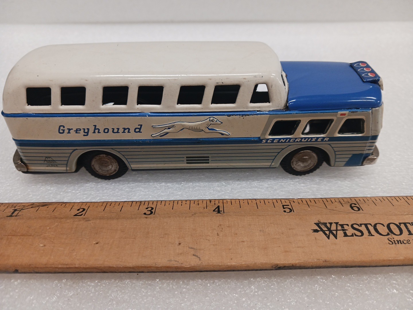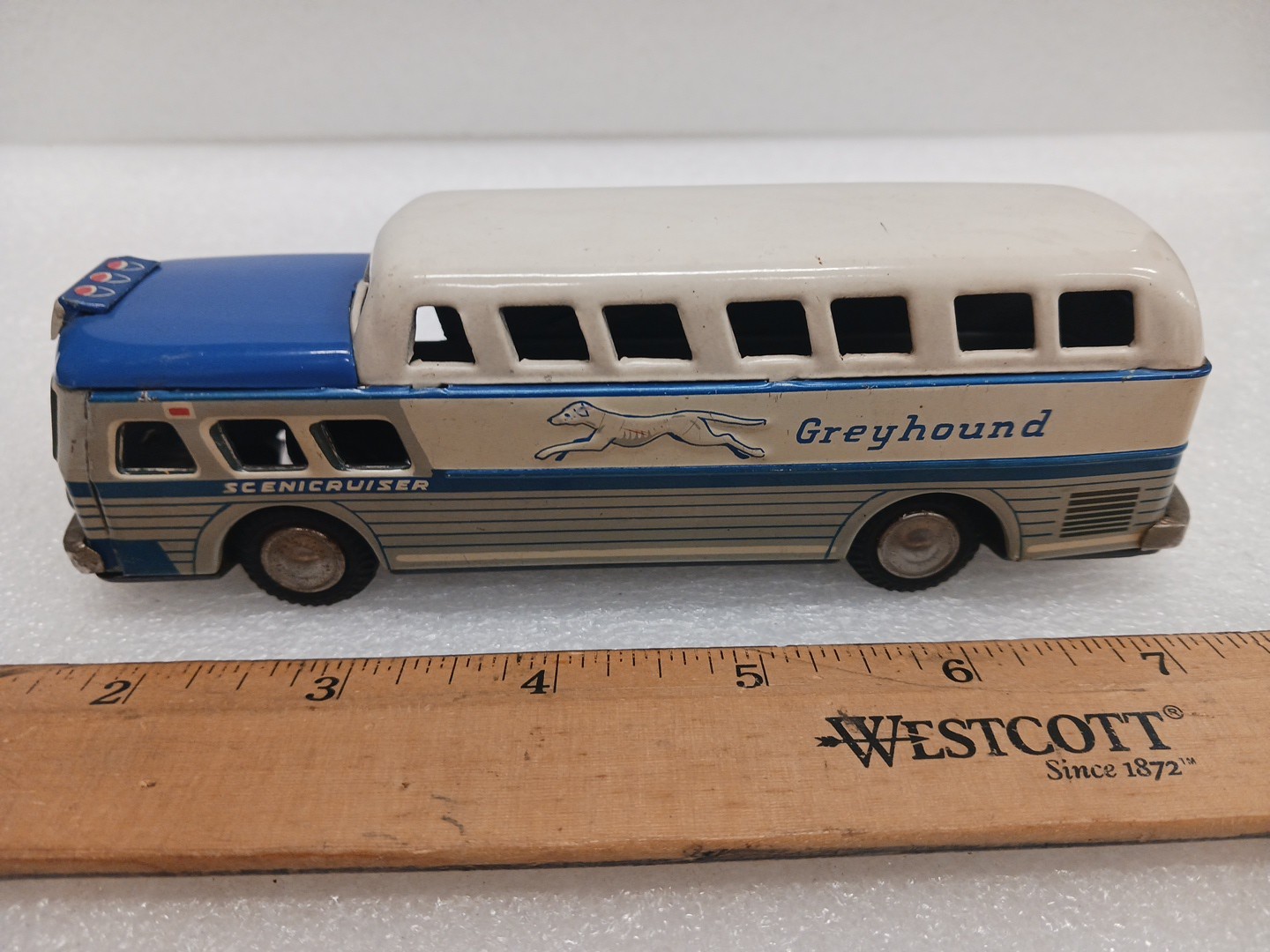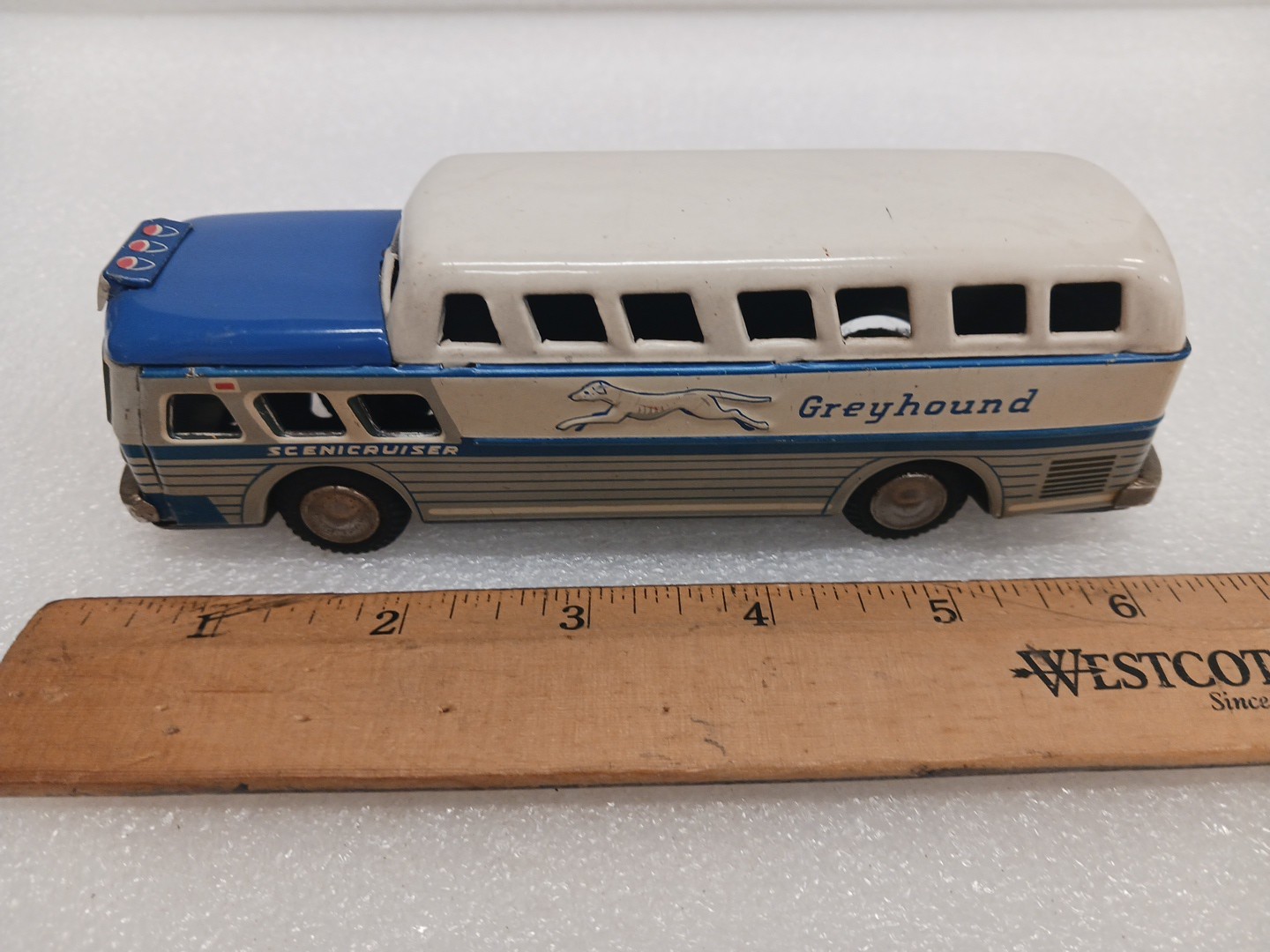 Vintage SSS TIN FRICTION GREYHOUND BUS TIN TOY SCENICCRUISER TIN TOY LOT